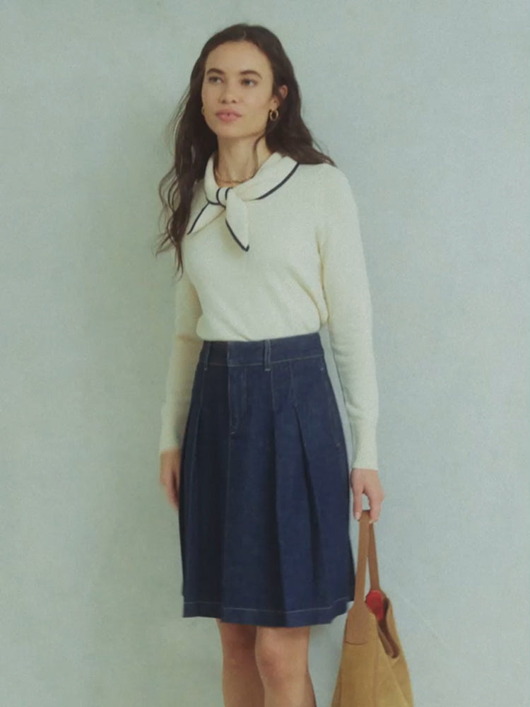 • Woman wearing a red sweater and patterned scarf standing in a snowy landscape with skis. Woman wearing a red and white patterned scarf in a snowy outdoor setting