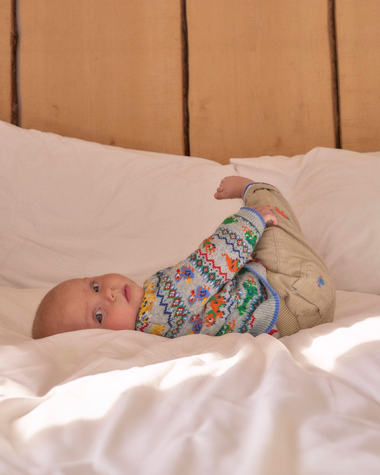 • Three children playing in the snow with a sled. Three children playing in the snow with a wooden sled.