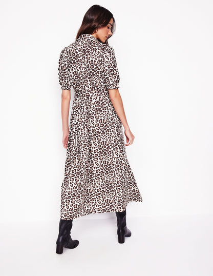 Alexa Maxi Shirt Dress-Sandpiper Beige, Cheetah Pop