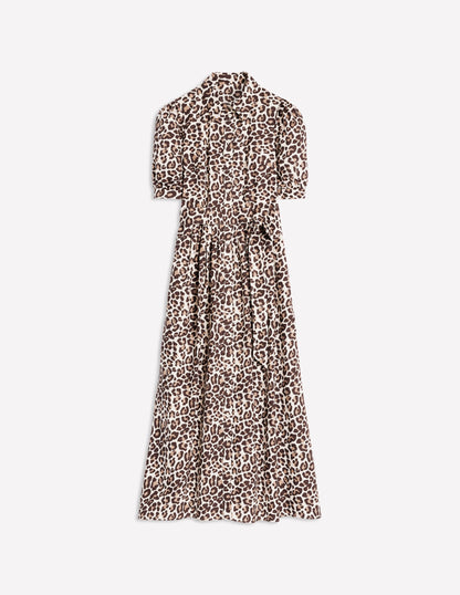 Alexa Maxi Shirt Dress Sandpiper Beige, Cheetah Pop