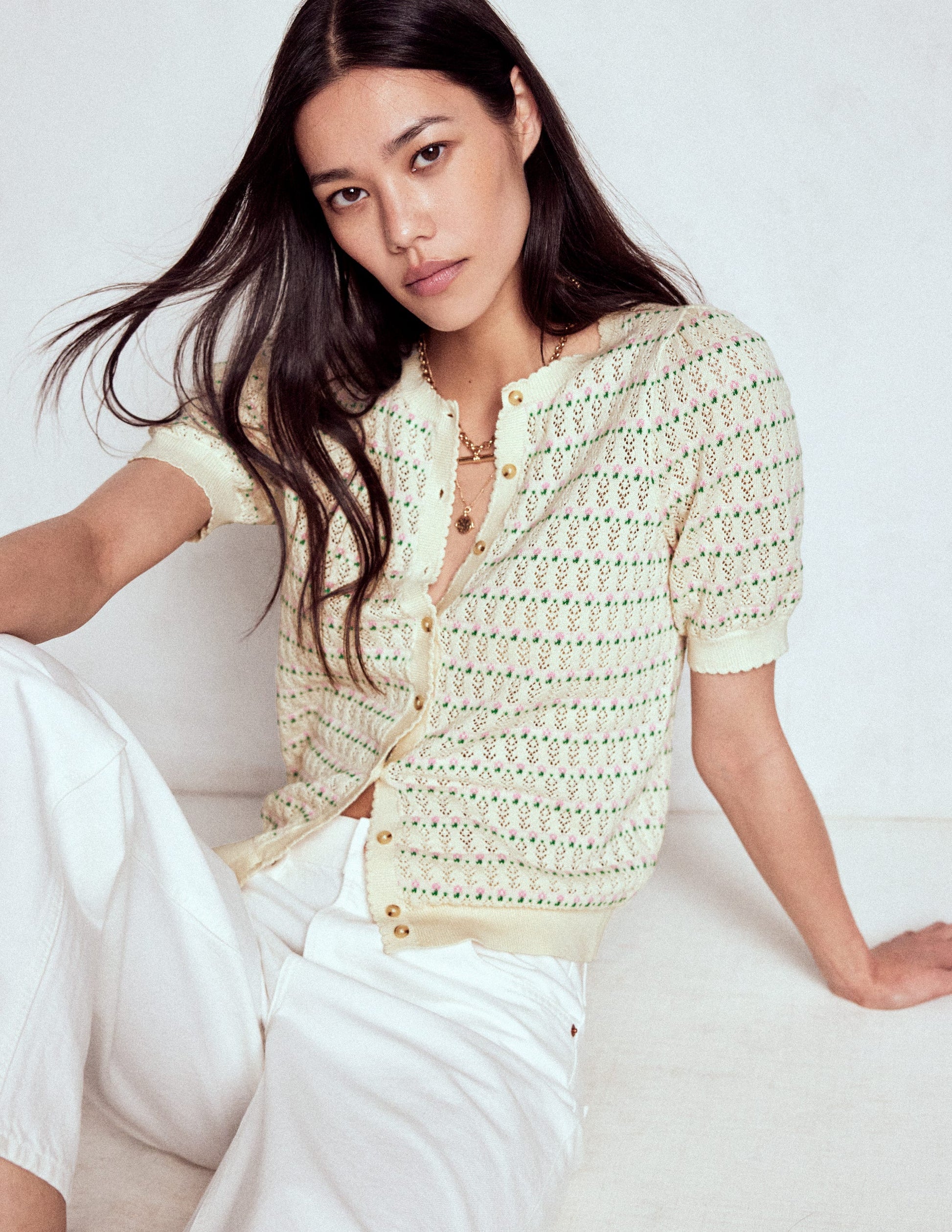 Dot Pointelle Cardigan Pretty Floral Fair Isle
