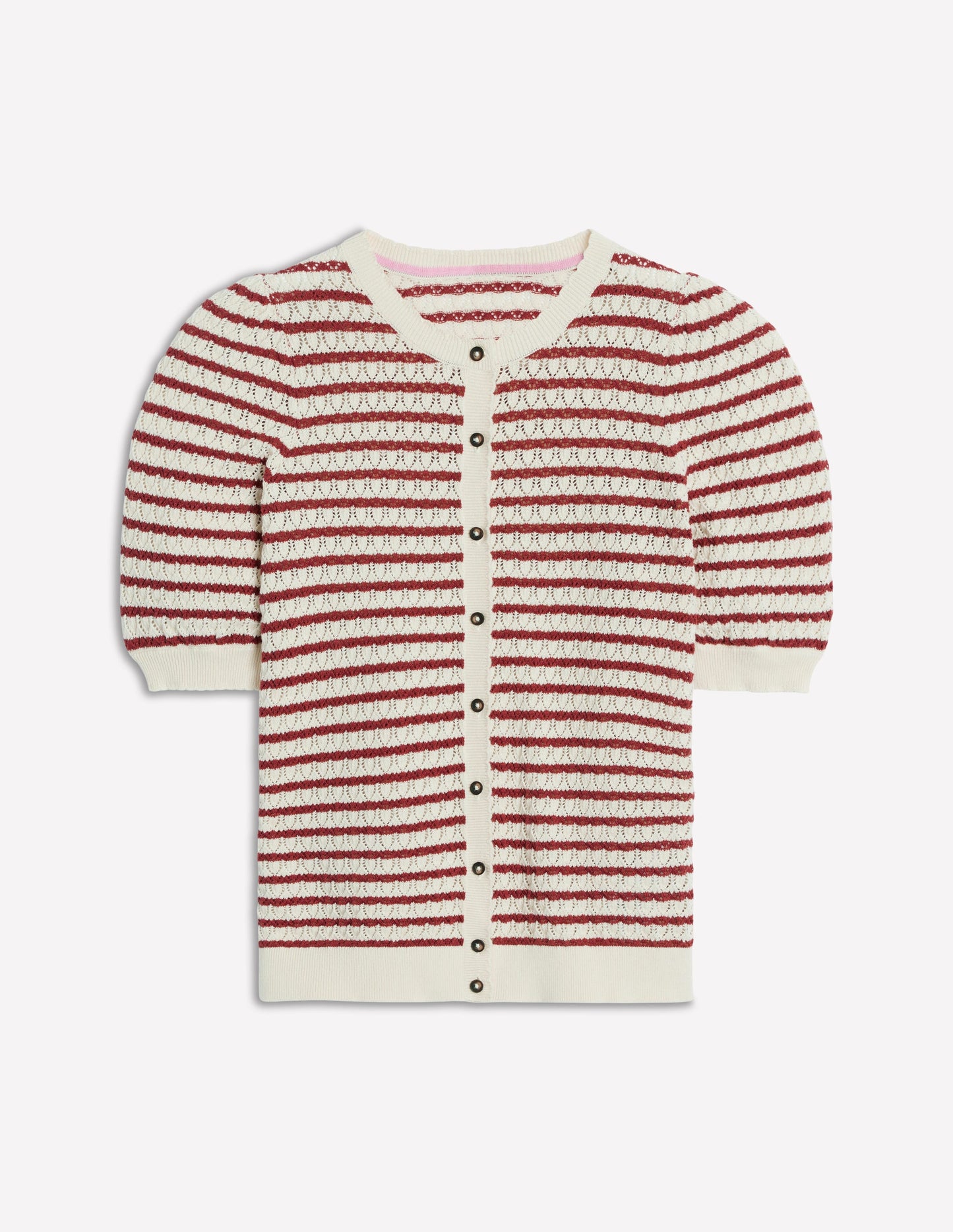 Dot Pointelle Cardigan-Warm Ivory/ Red