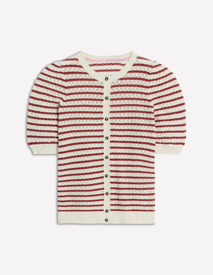 Dot Pointelle Cardigan Warm Ivory/ Red
