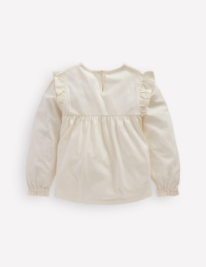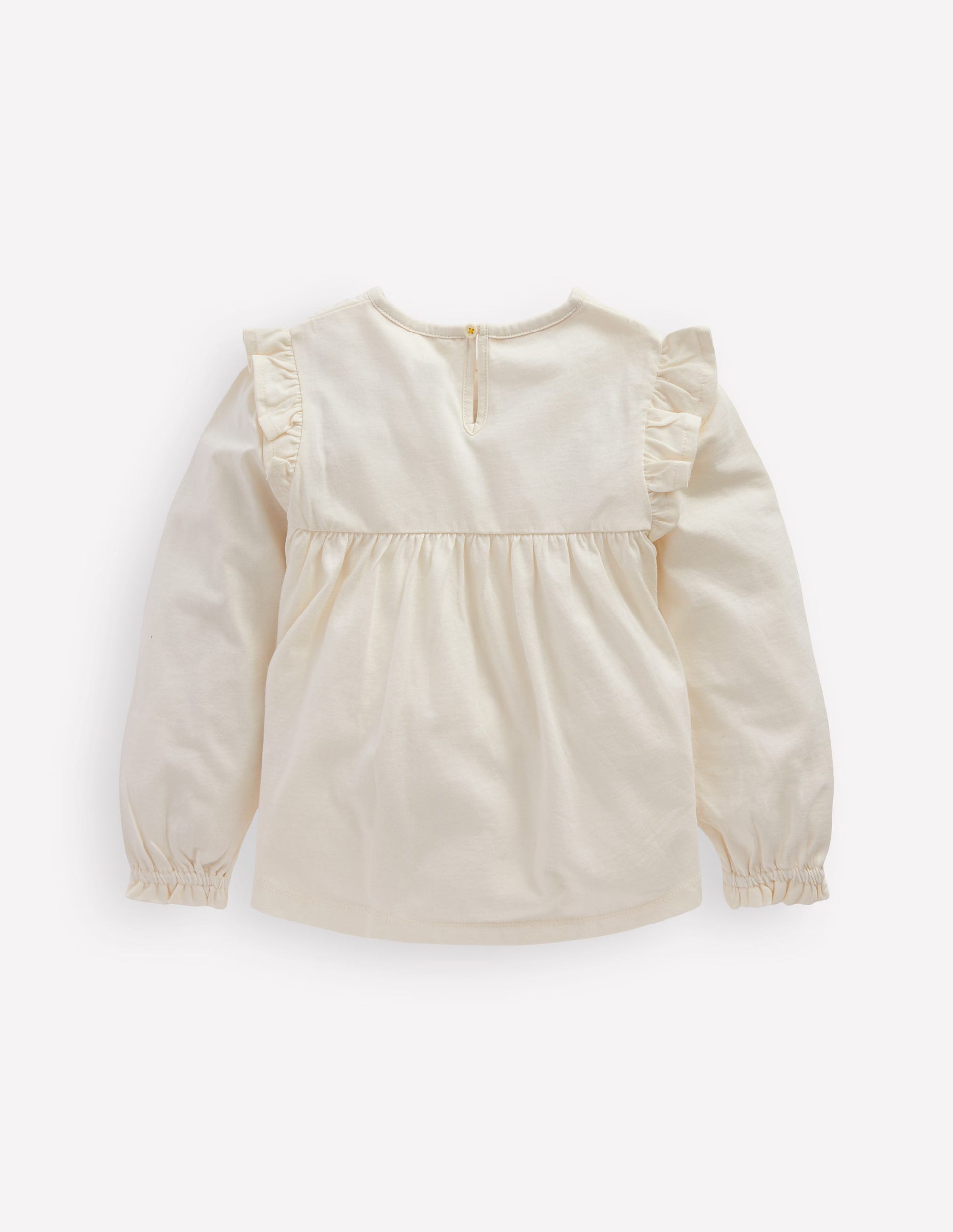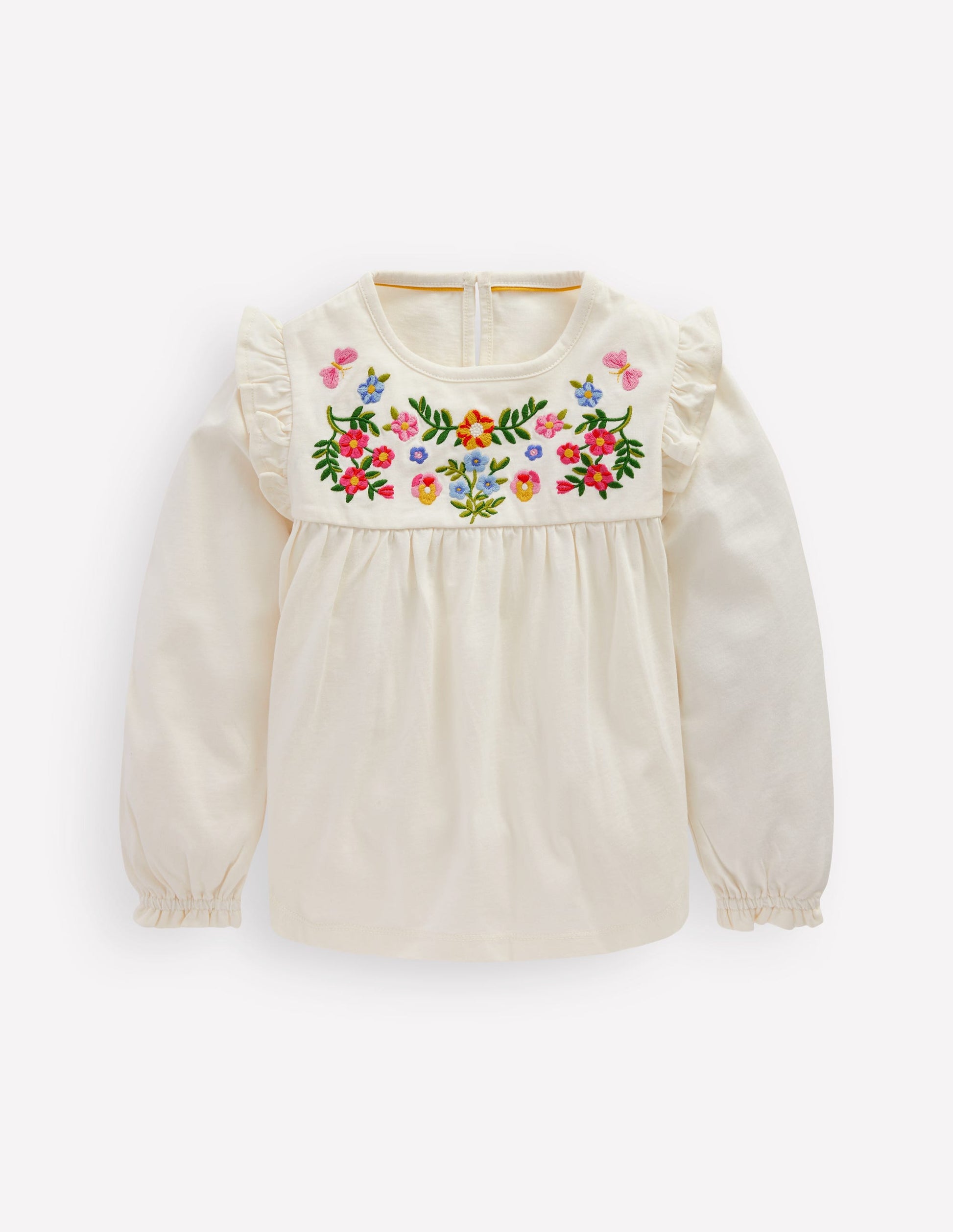 Embroidered Jersey Yoke Top Soft Ivory Embroidery