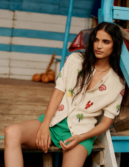 Embroidered T-Shirt Cardigan Warm Ivory, Tropical Bonanza