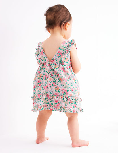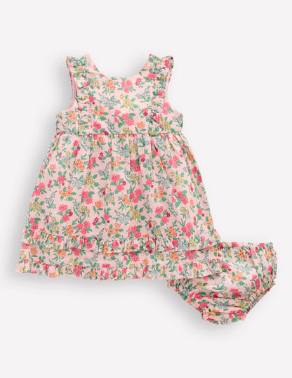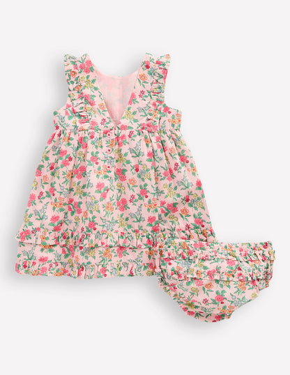 Frilly Pinny Dress Chalk Pink Garden Ditsy