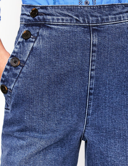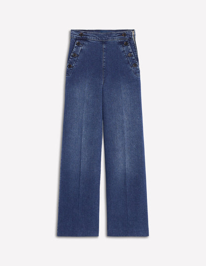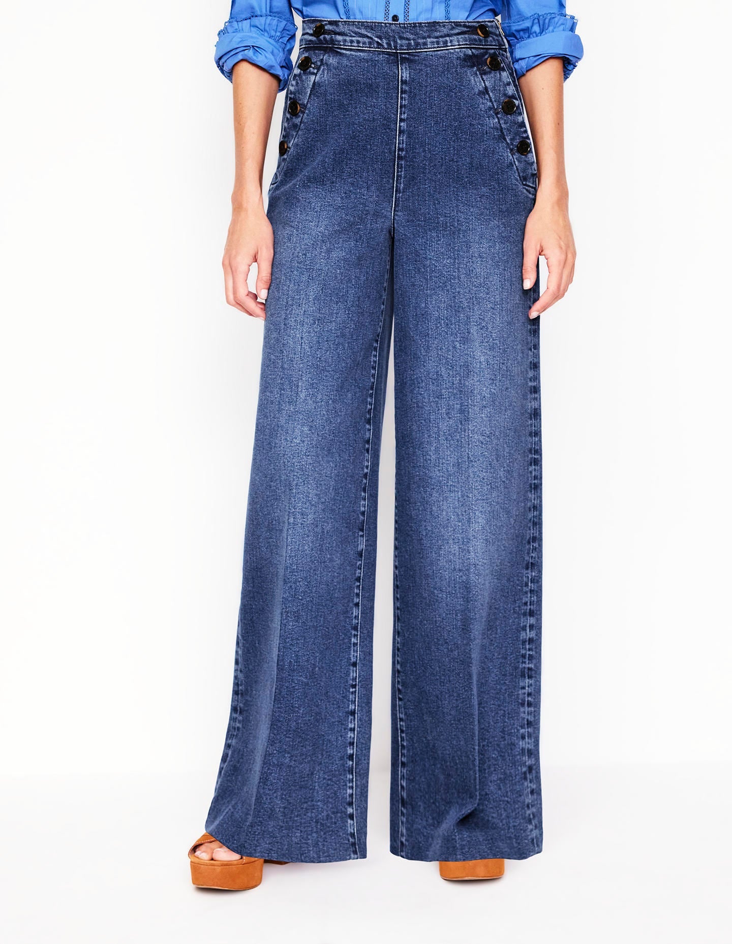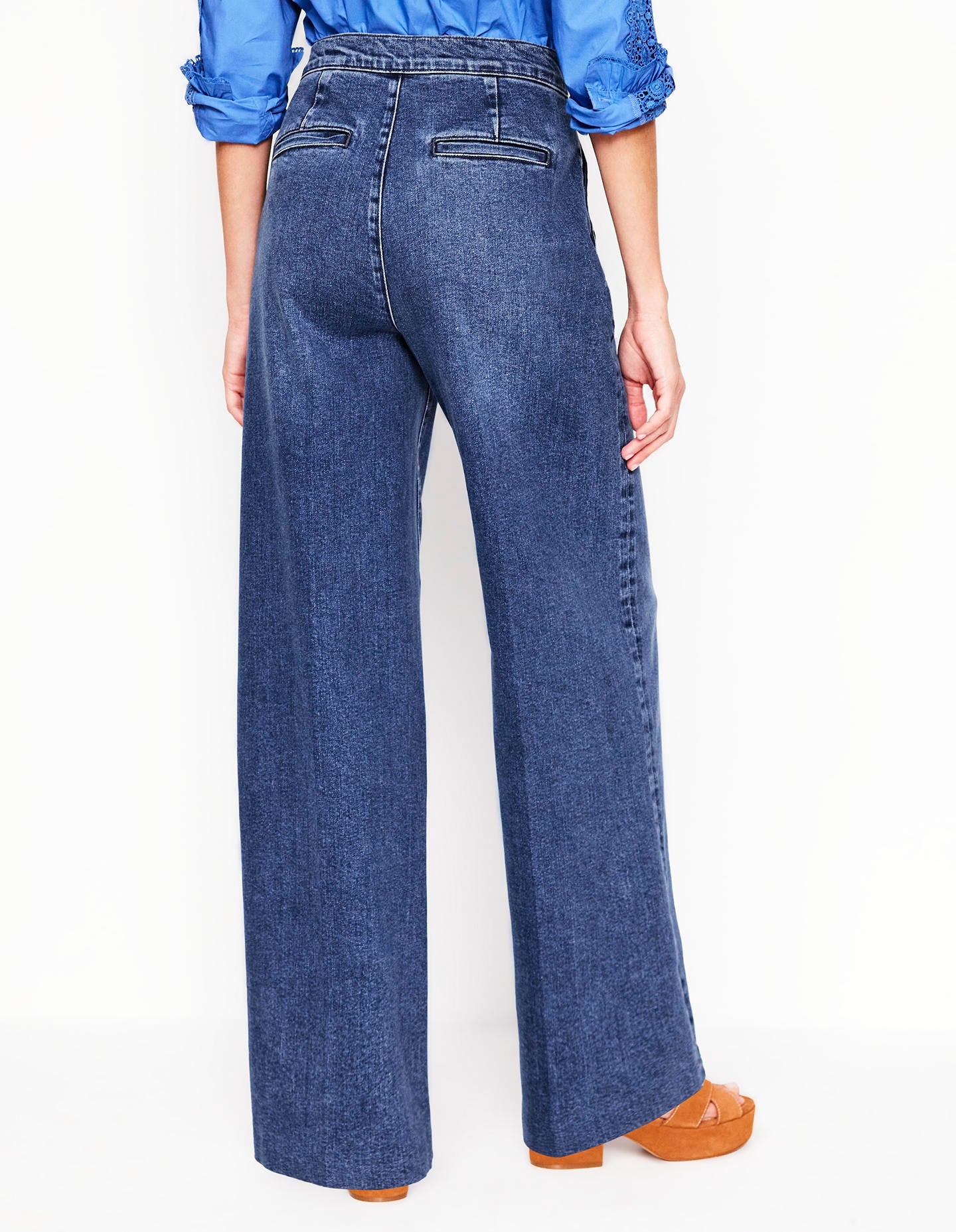 - Wide leg – Slim through the hip and thigh, with a wide leg