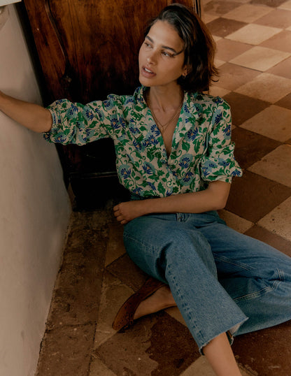 Helena Cotton Top-Rich Emerald, Ornate Vine