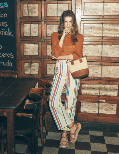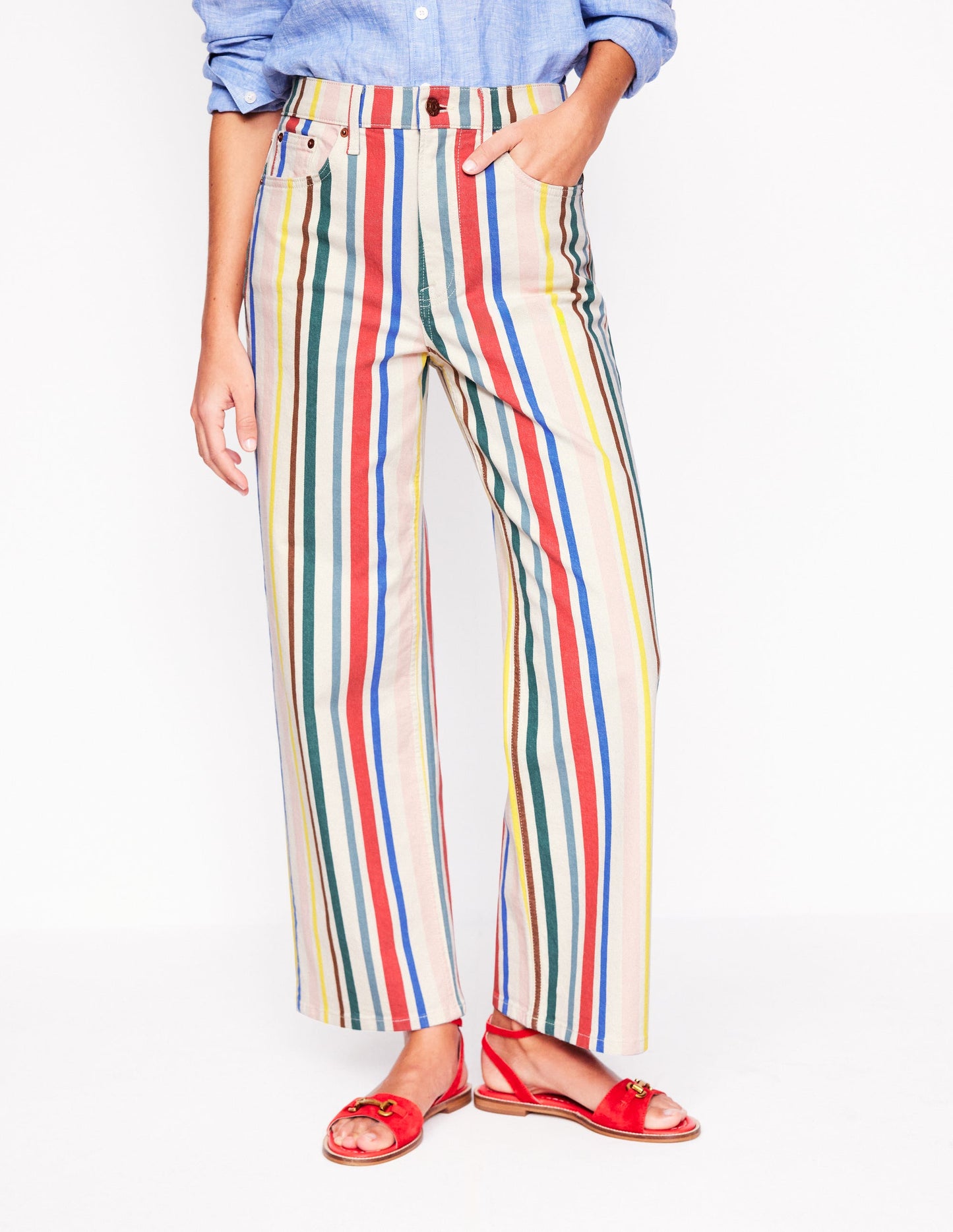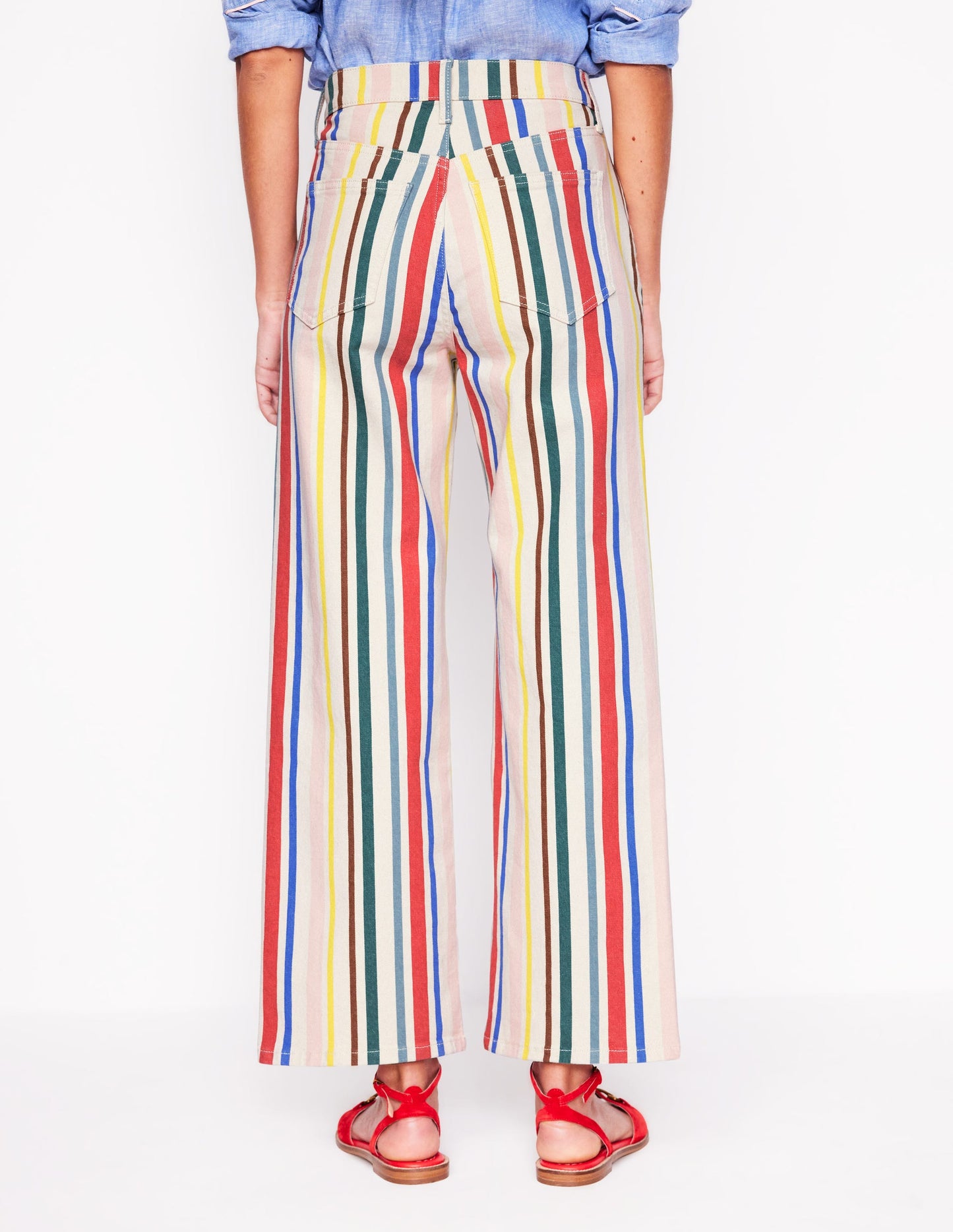 High Rise Stripe Crop Jeans Green and Pink Rainbow Stripe