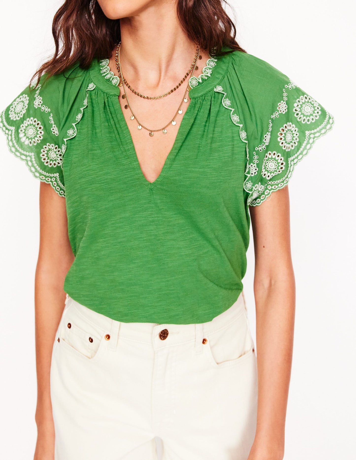 Ila Broderie Sleeve Notch Top Paradise Green