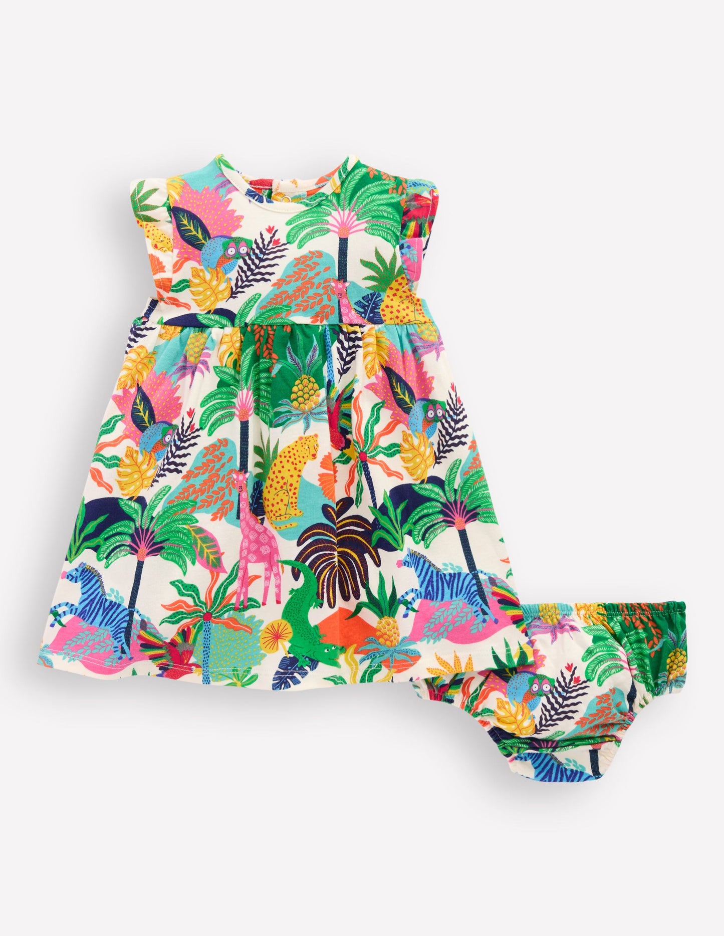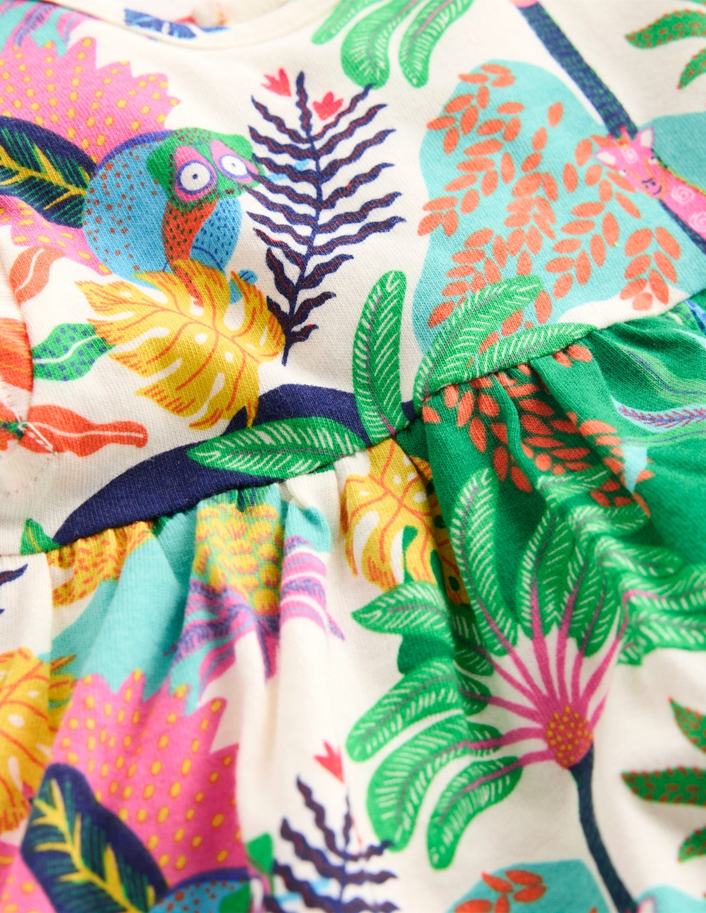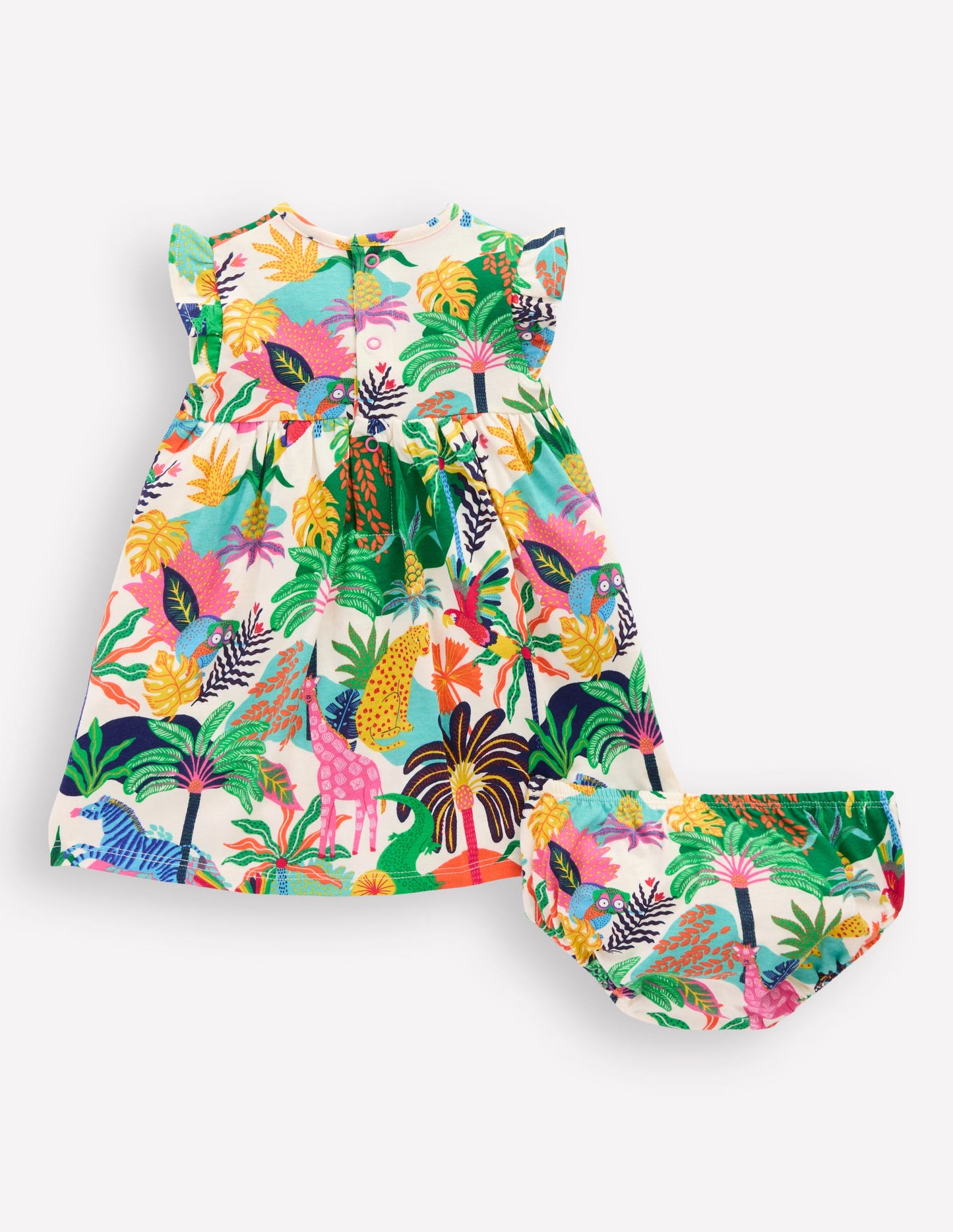 Jersey Frill Sleeve Dress Coconut Milk Multi Jungle