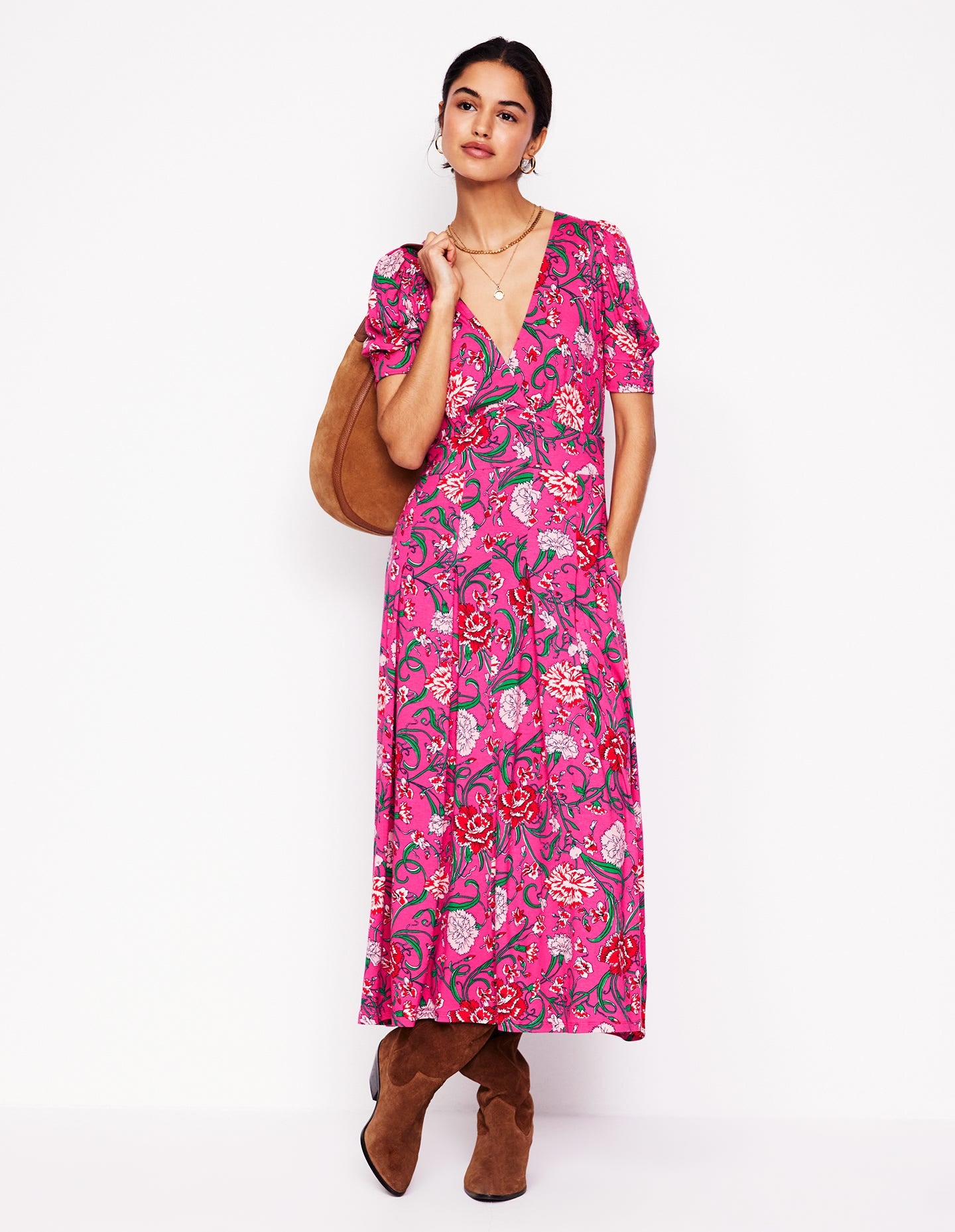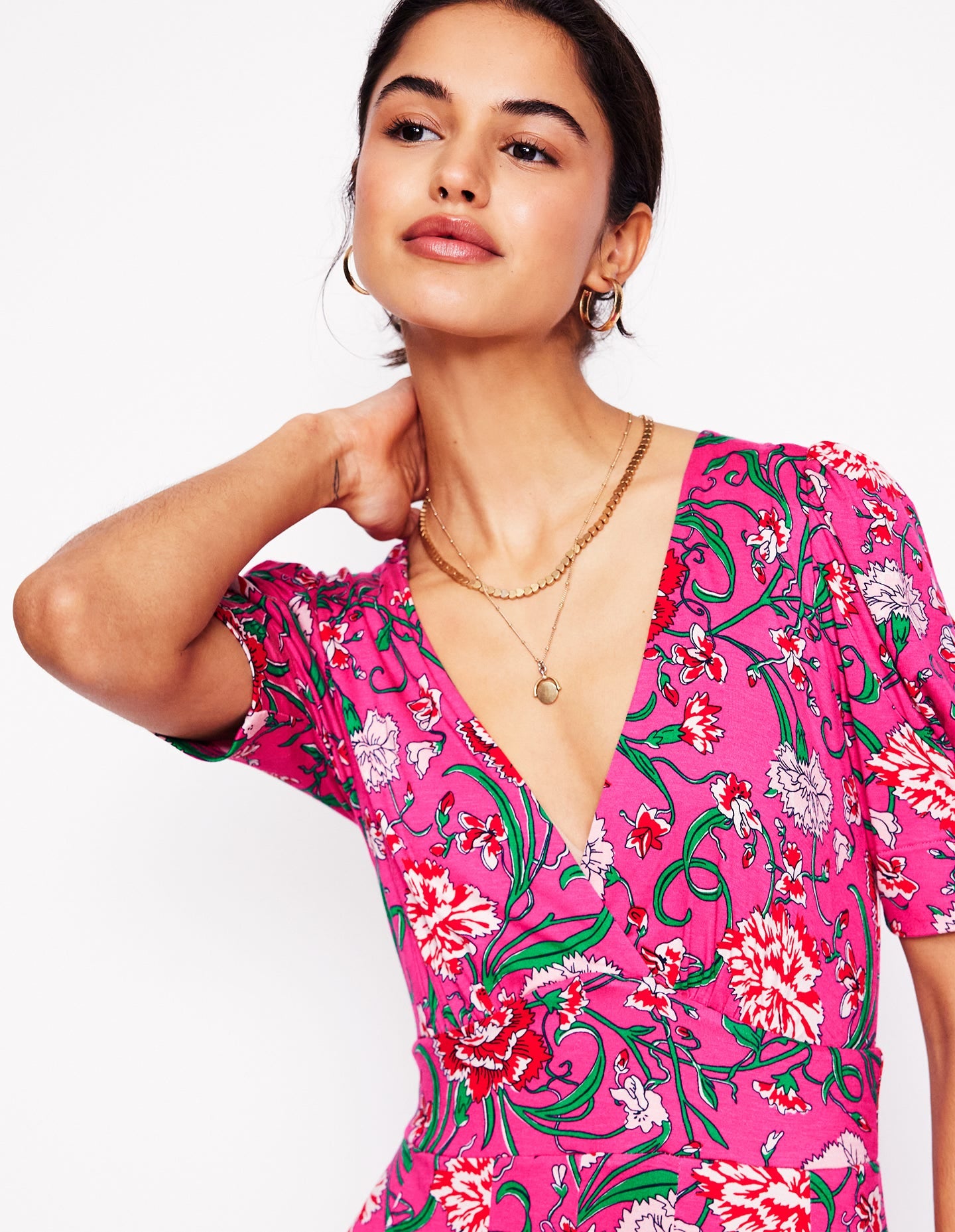 Kristen Pleated Jersey Dress Pink Yarrow, Carnation Vine