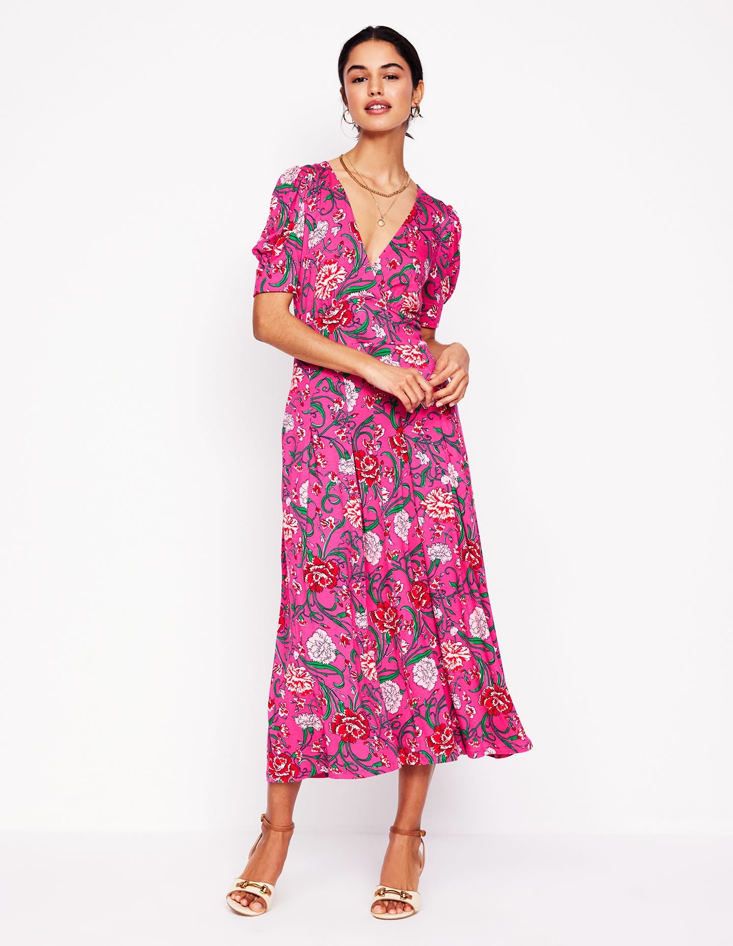 Kristen Pleated Jersey Dress-Pink Yarrow, Carnation Vine