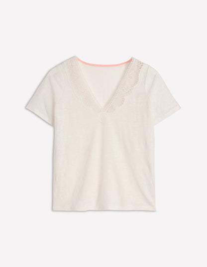 Lace Trim Linen T-shirt-Ivory