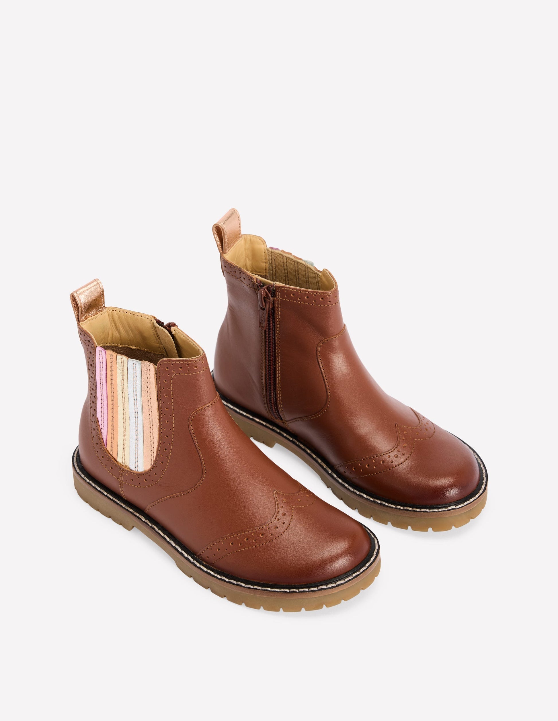 A fun take on the classic Chelsea boot. The rich leather and chunky sole make them stomp resistant. And a pull tab and . . . more