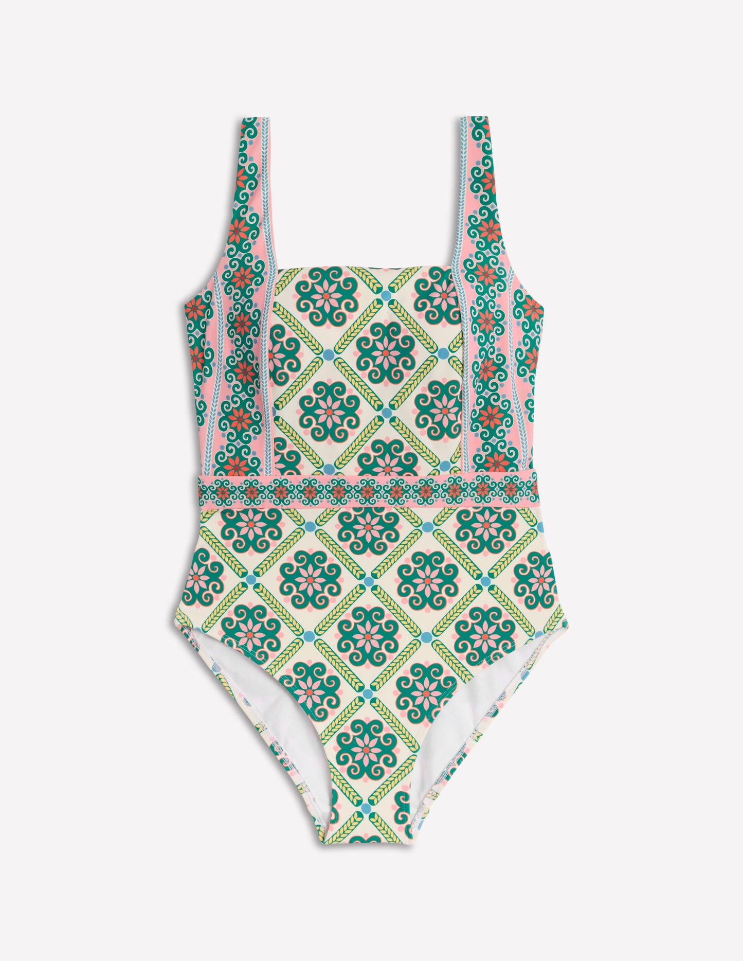 Lefkada Square Neck Swimsuit Rich Emerald, Baroque Tile
