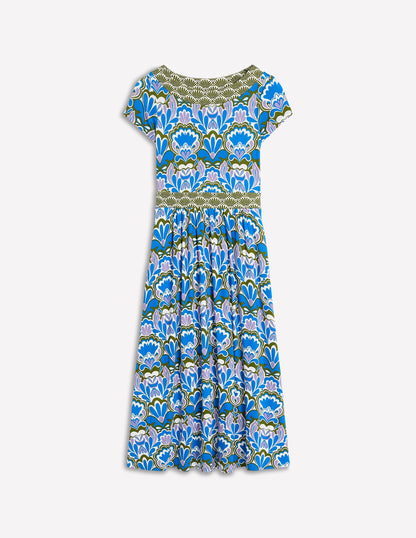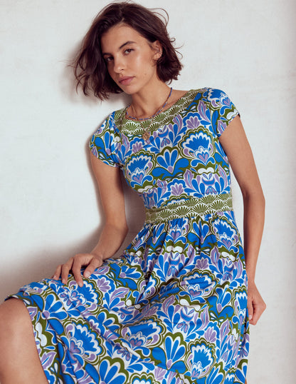 Melanie Jersey Midi Dress-Kingfisher Blue, Freesia Stamp