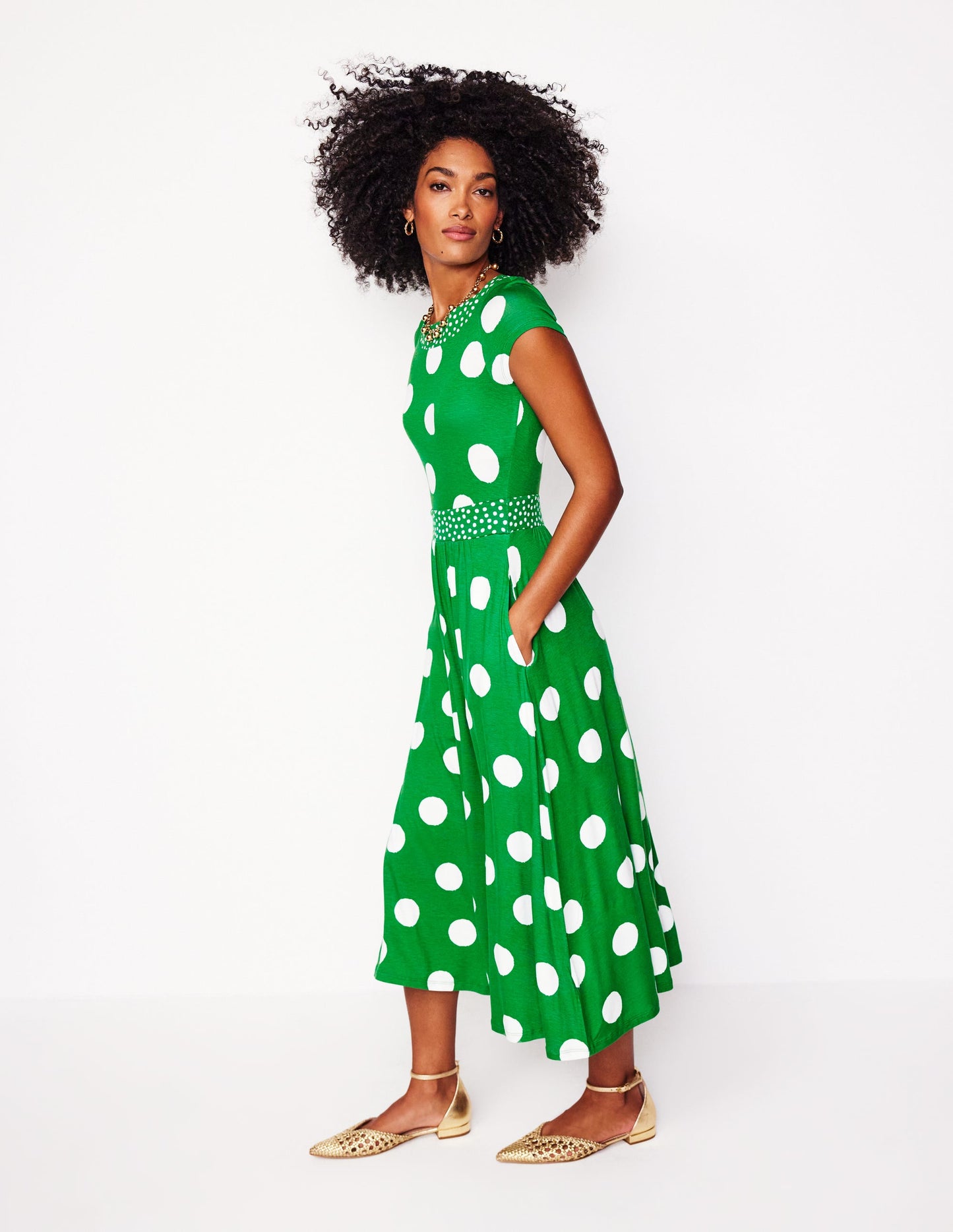Melanie Jersey Midi Dress-Rich Emerald, Abstract Dot