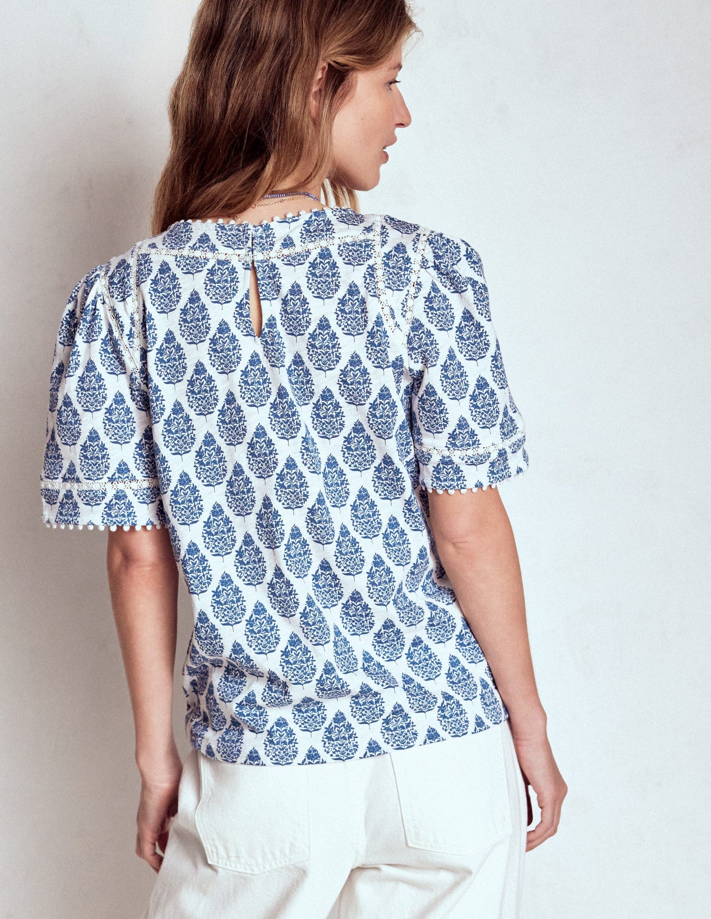 Mila Lace Trim Top-Denim Blue, Wildflower Bouquet