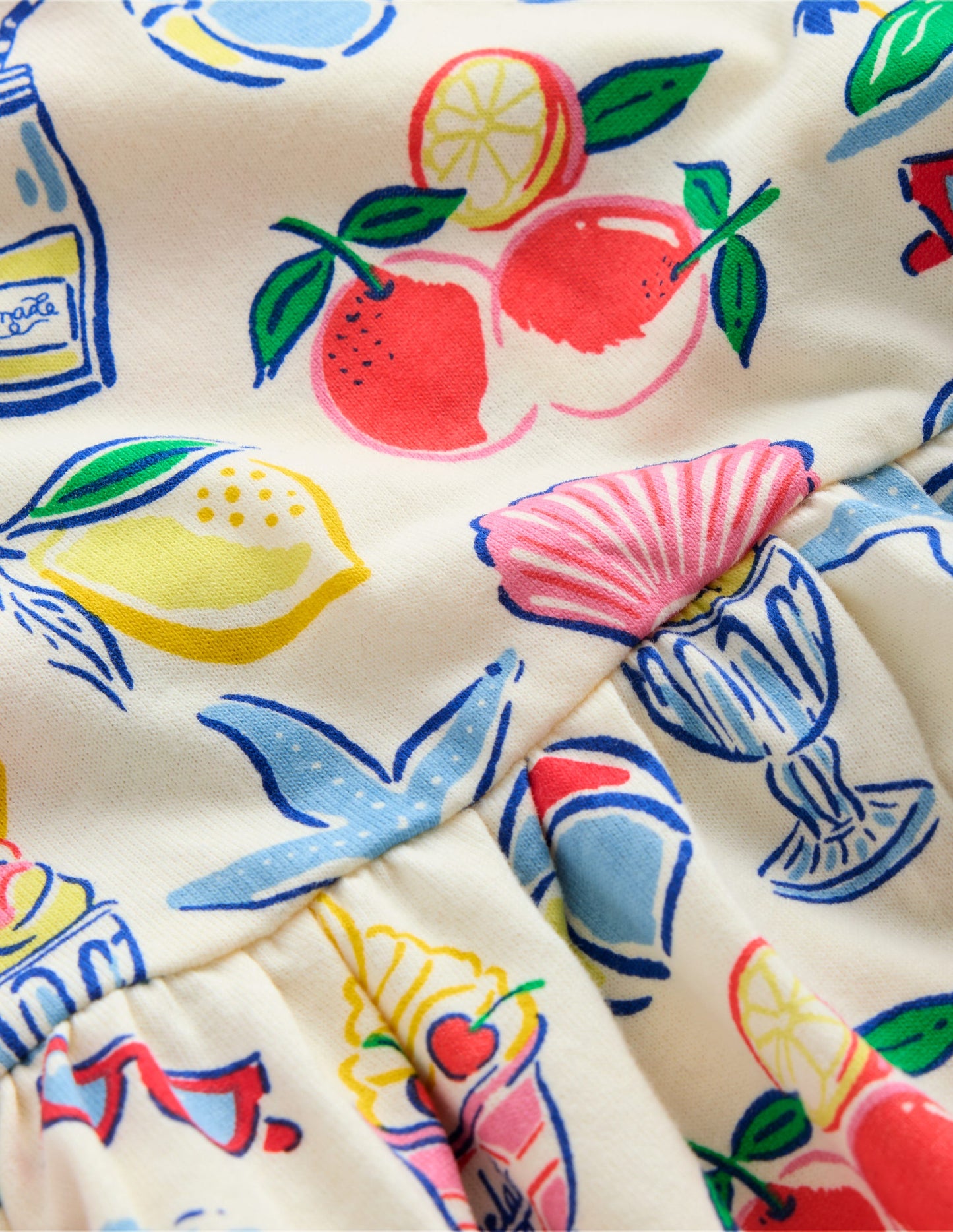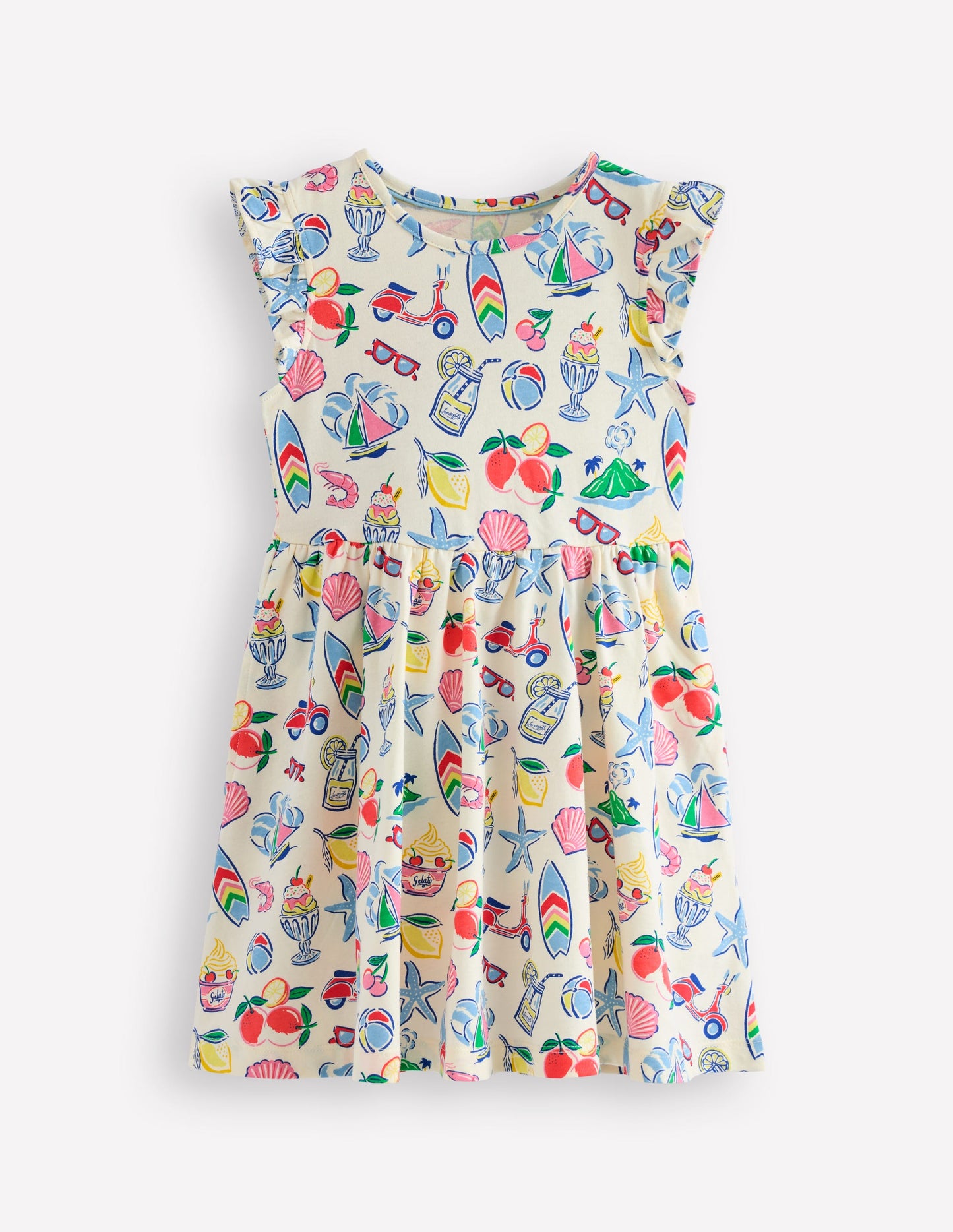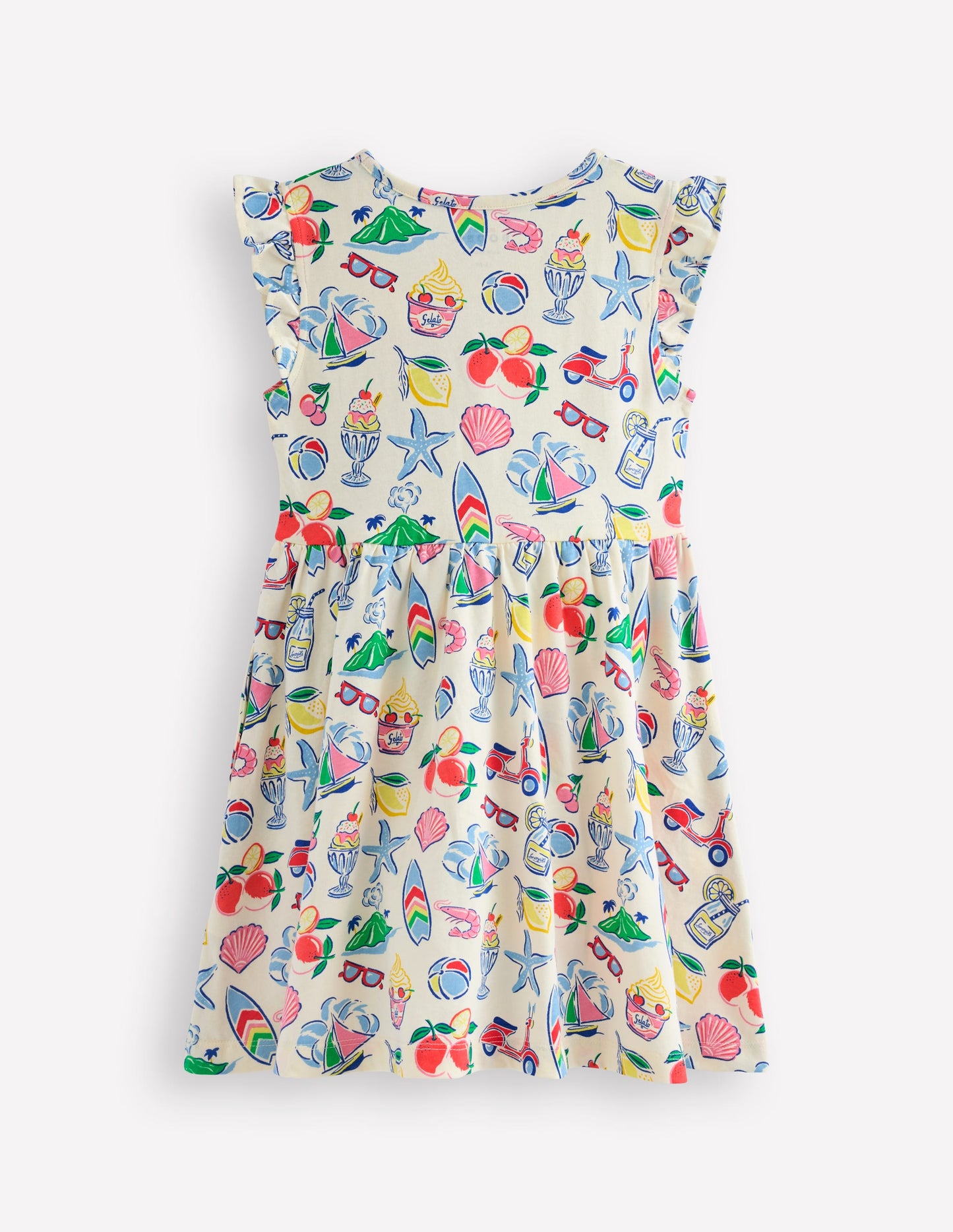 Posie Frill Sleeve Dress Ivory Holiday Print