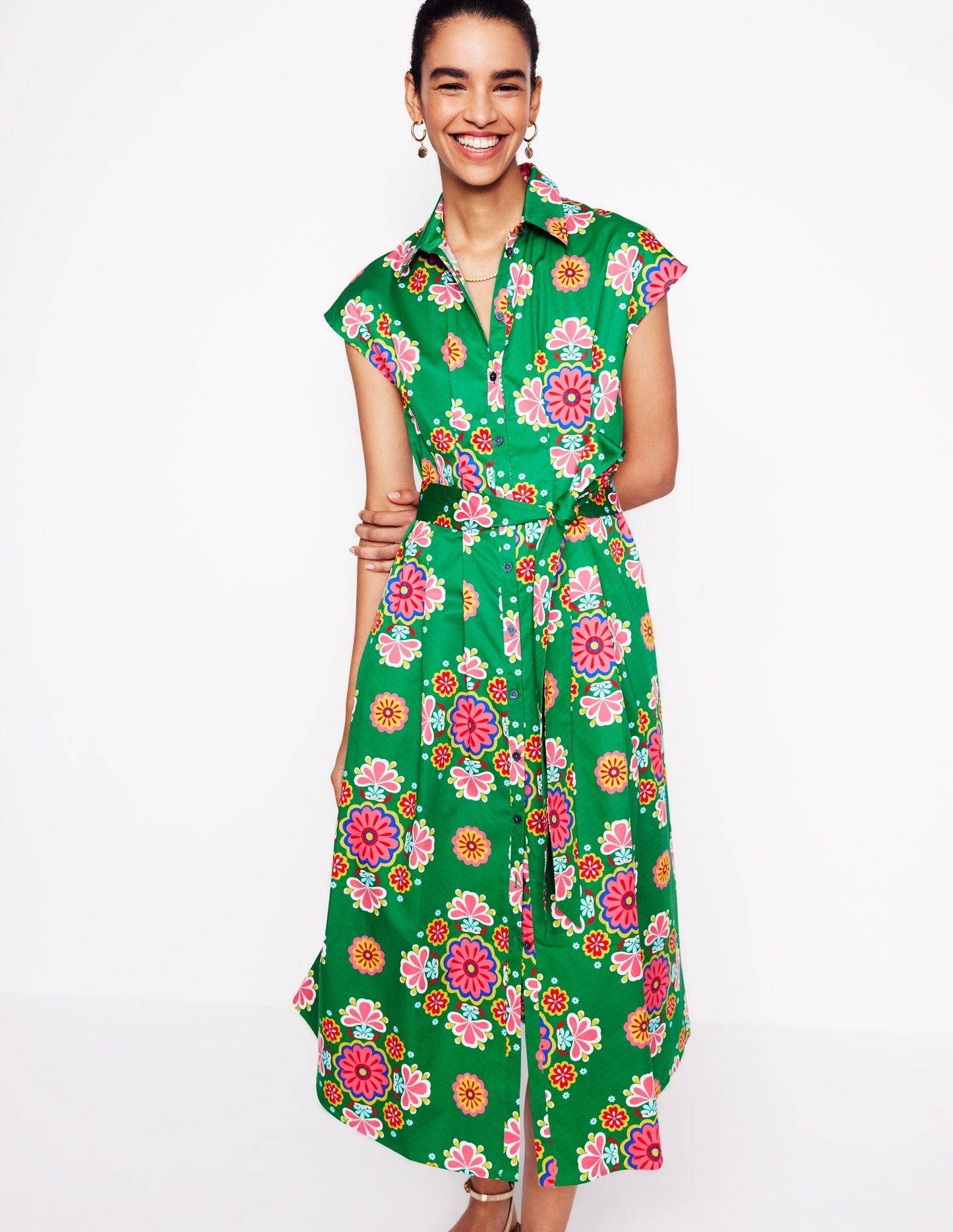 Rachel Cotton Midi Shirt Dress Rich Emerald, Meadow Posy
