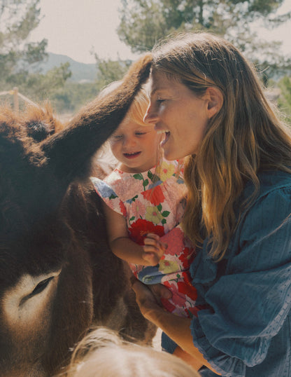 Minis will be wrapped up in ruffles and ready to roll, crawl or waddle in this frilly romper. We love the colourful prints and buttons at the back. Hidden poppers make quick changes easy.
