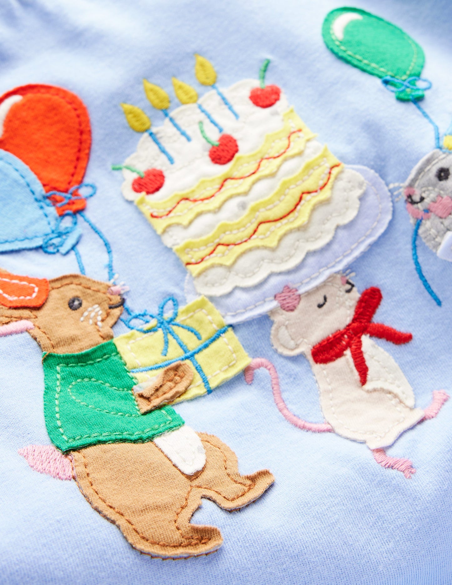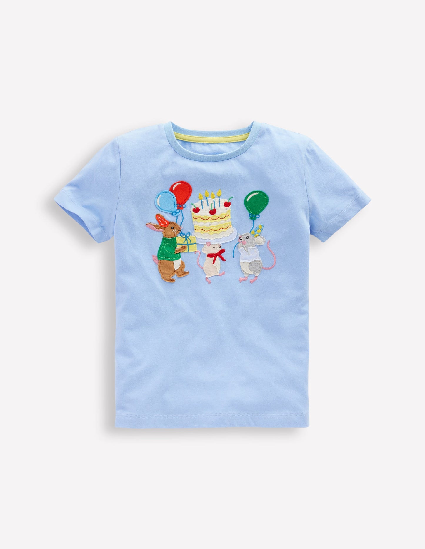 Short Sleeve Appliqué T-shirt Glacier Blue Birthday Bunnies