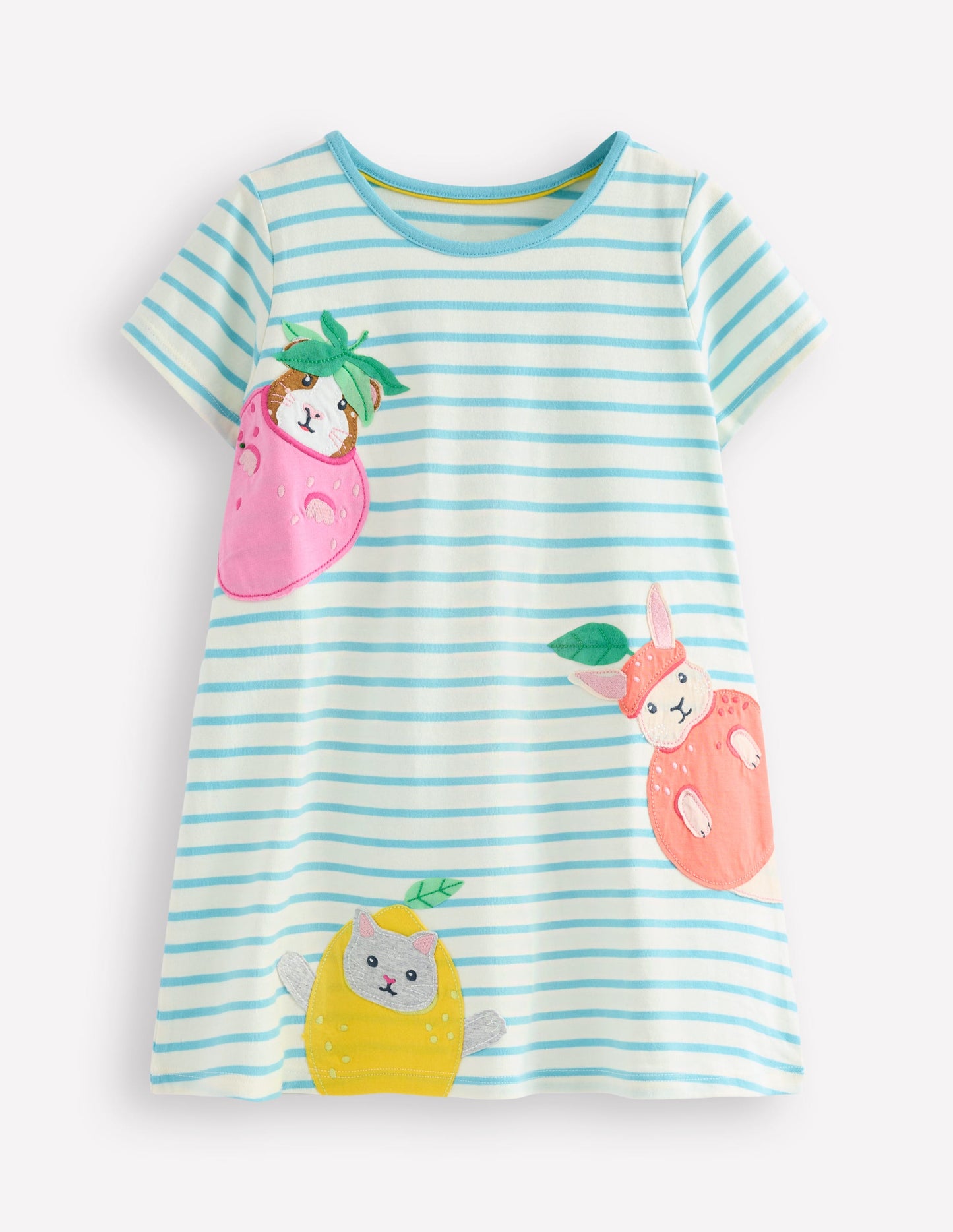 Short Sleeve Applique Tunic Caribbean Blue Animals