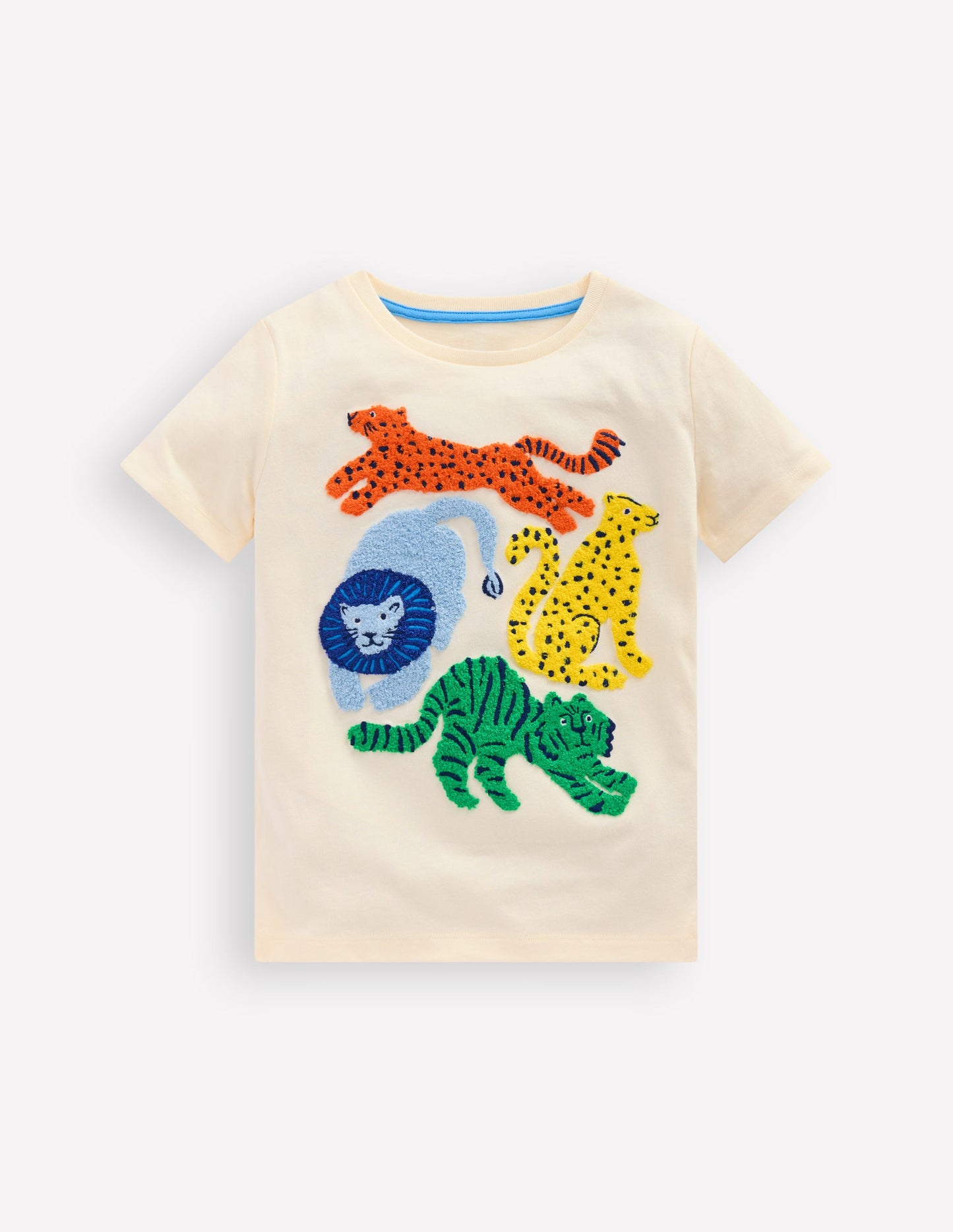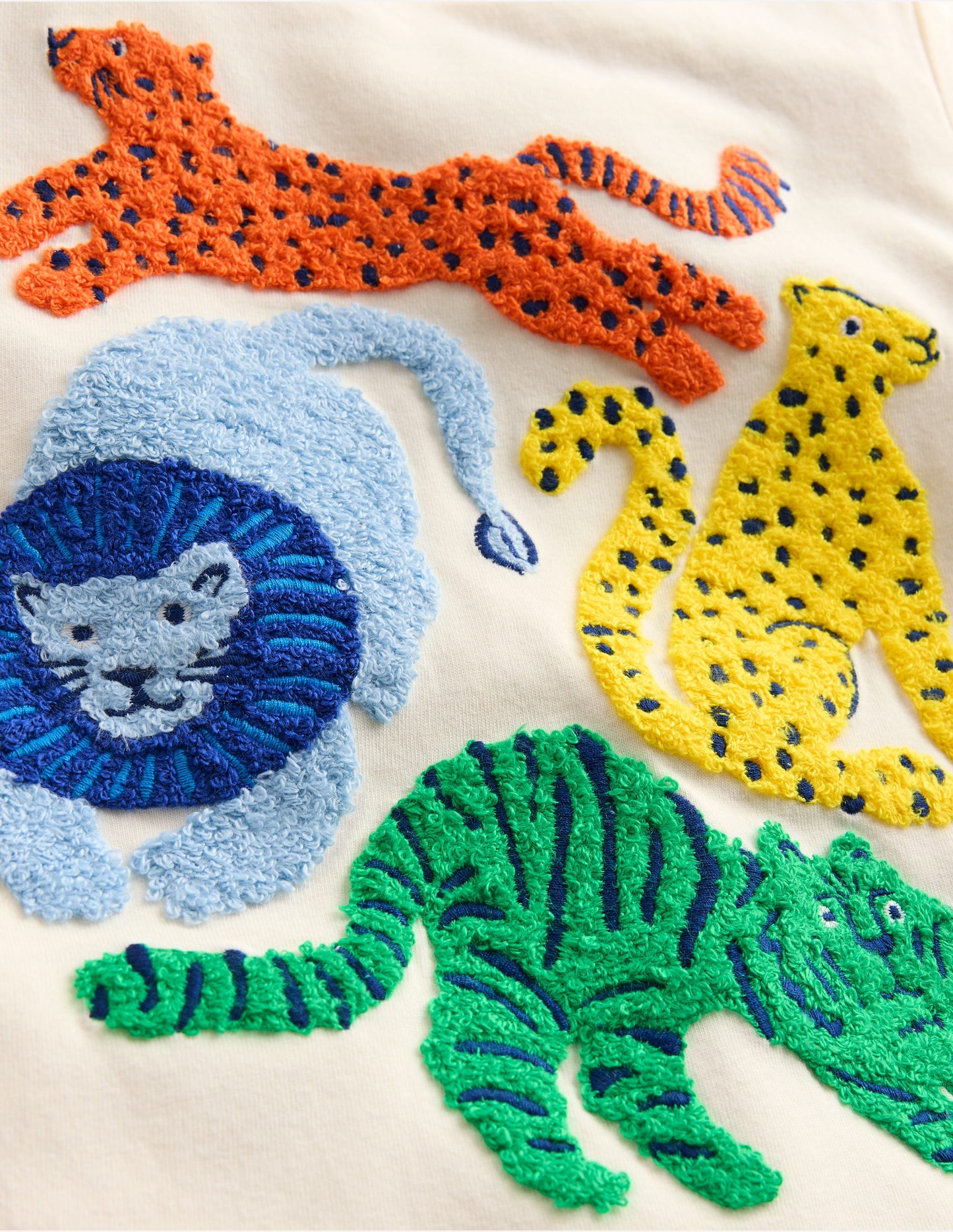 Short Sleeve Bouclé T-shirt Soft Ivory Big Cats