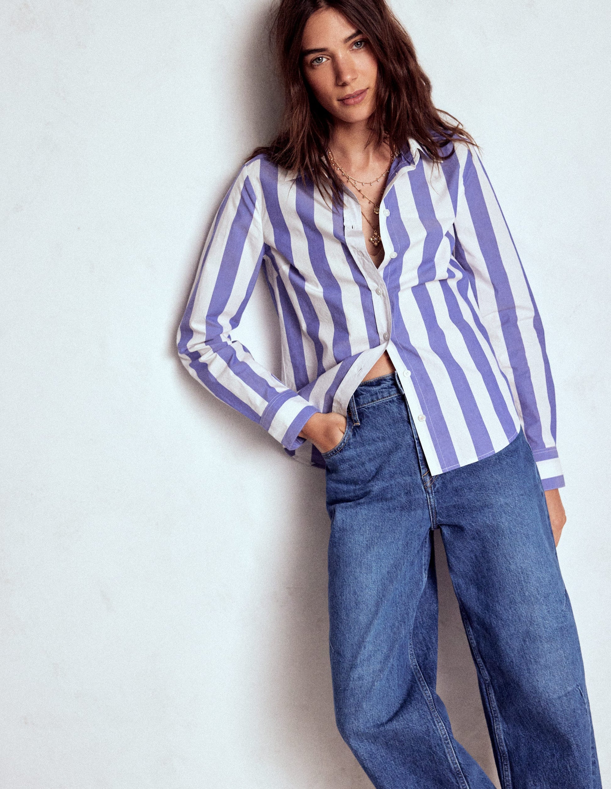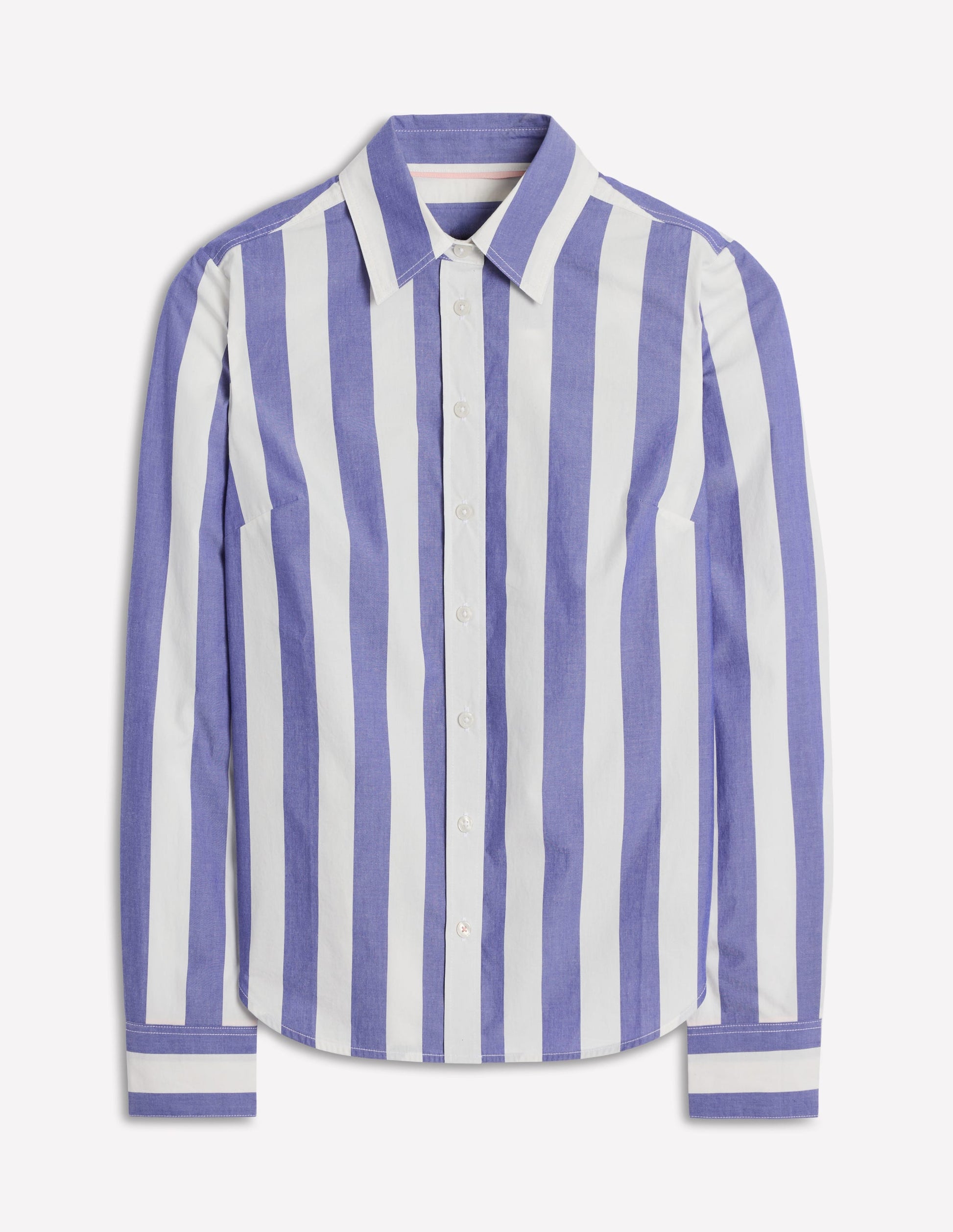 Sienna Cotton Shirt-Bright Blue and Ivory Stripe