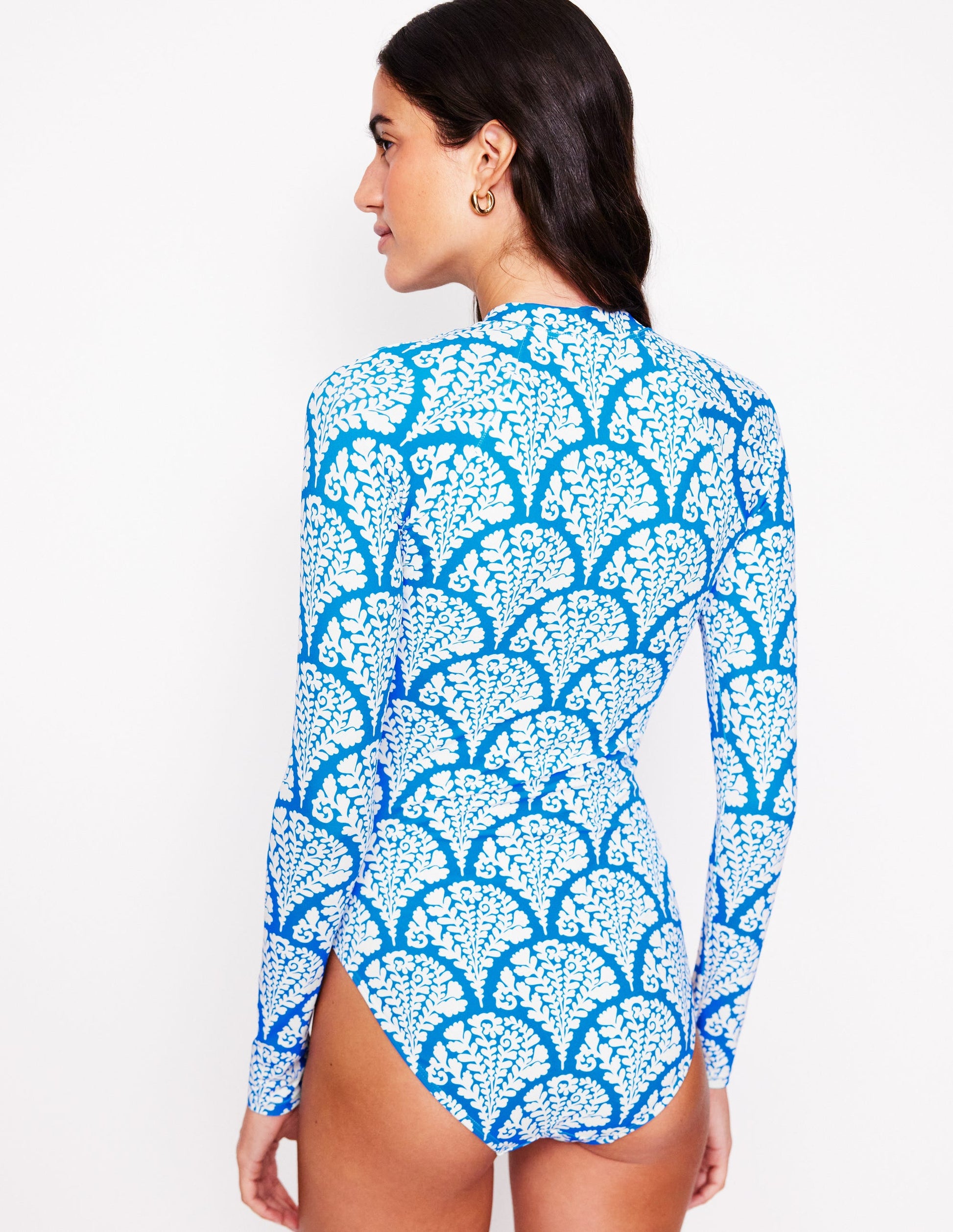 This raglan swimsuit features a handy front zip, removable cups and long sleeves for added coverage when you're out in the sun all day (you lucky thing). Enjoy water sports in style.