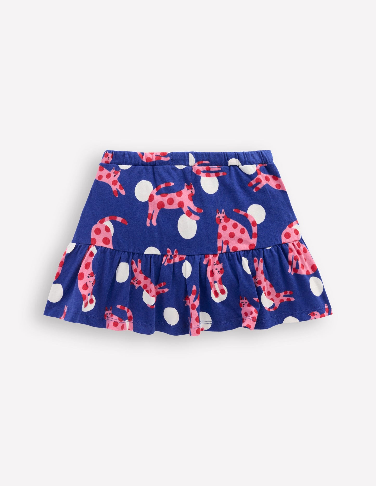 Tiered Jersey Skort Bright Blue Spotty Cats