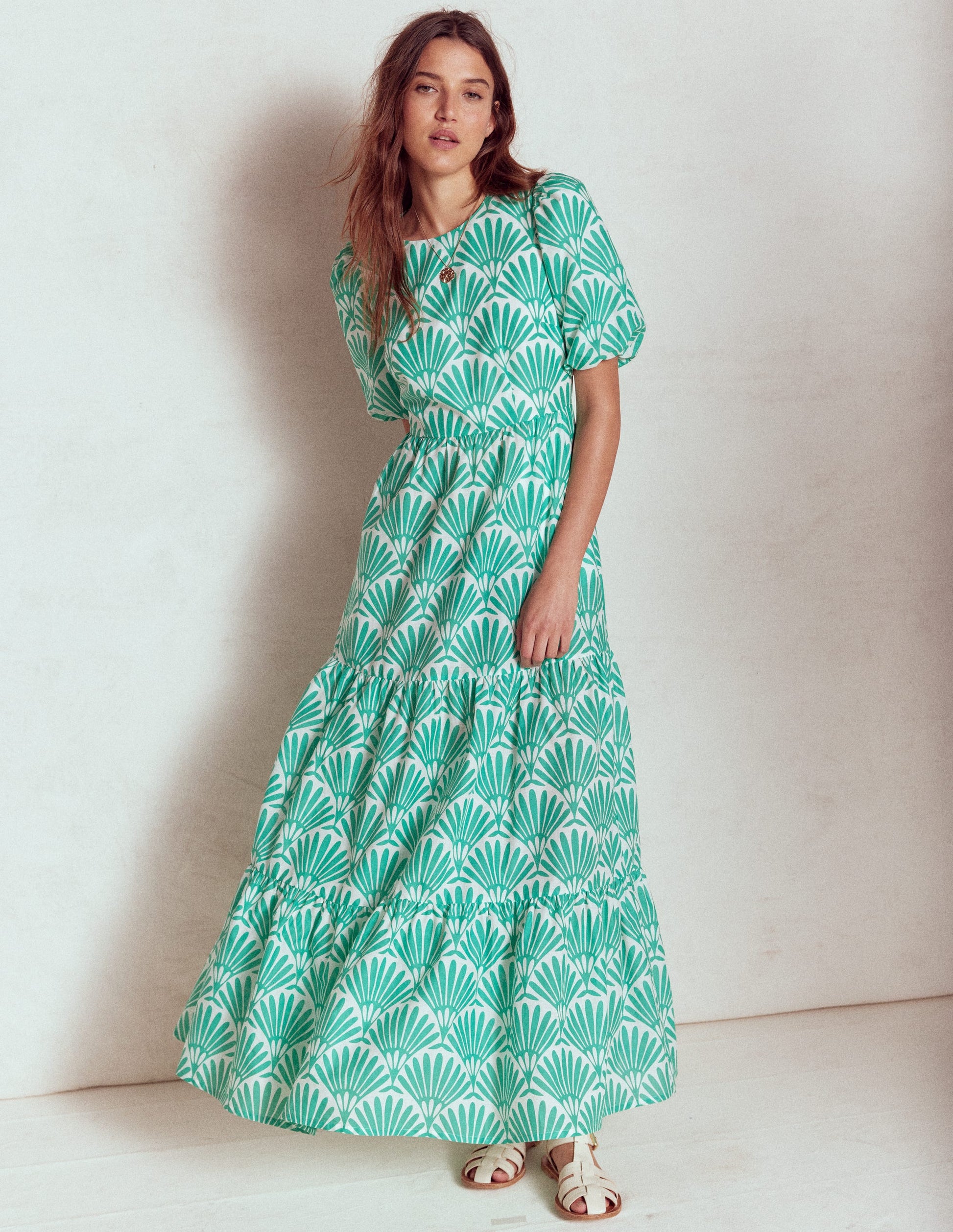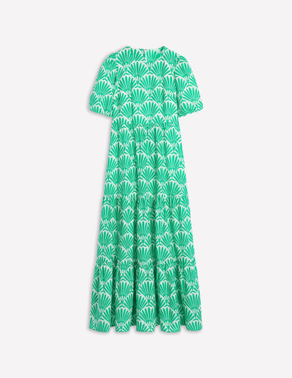 Tiered Poplin Maxi Dress Aquamarine Blue, Deco Palm
