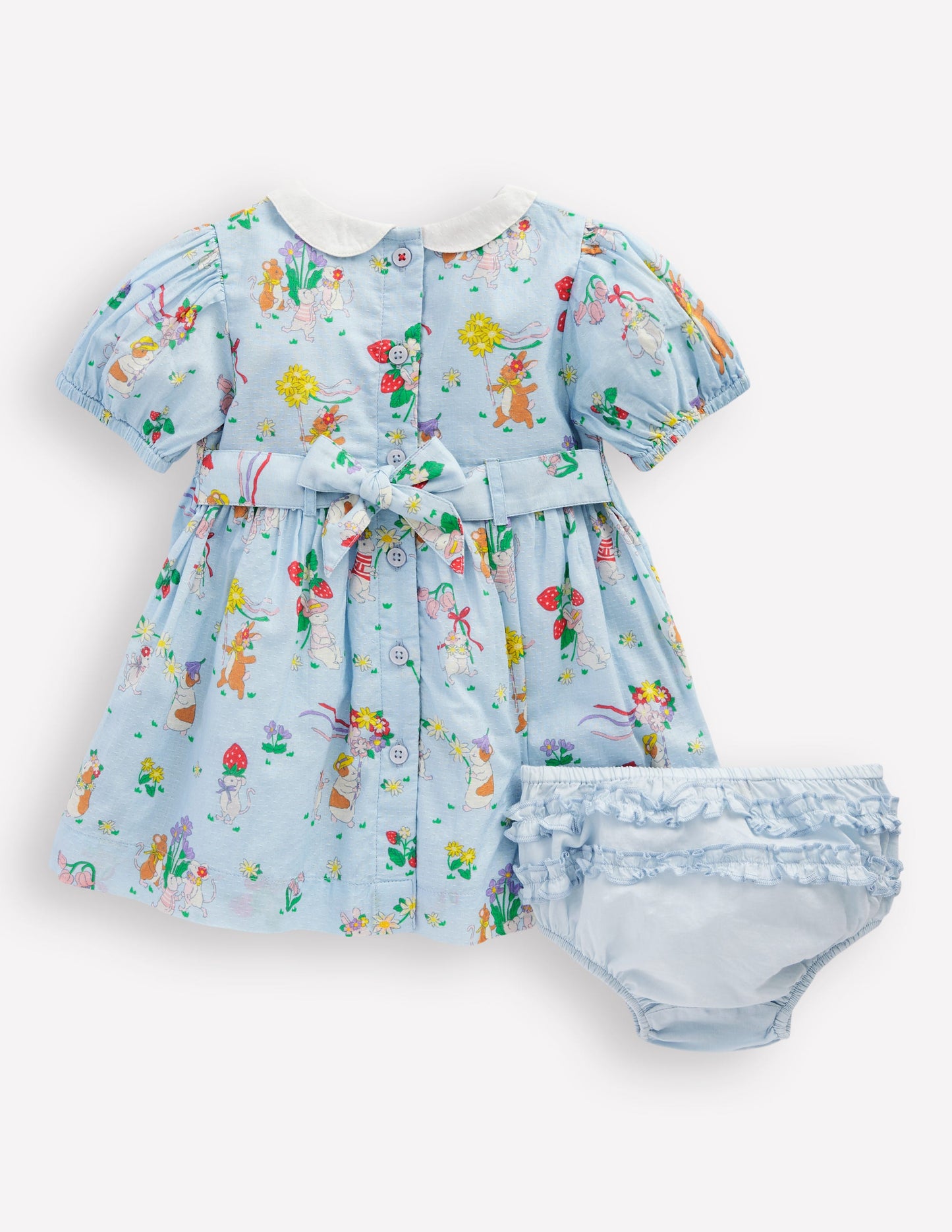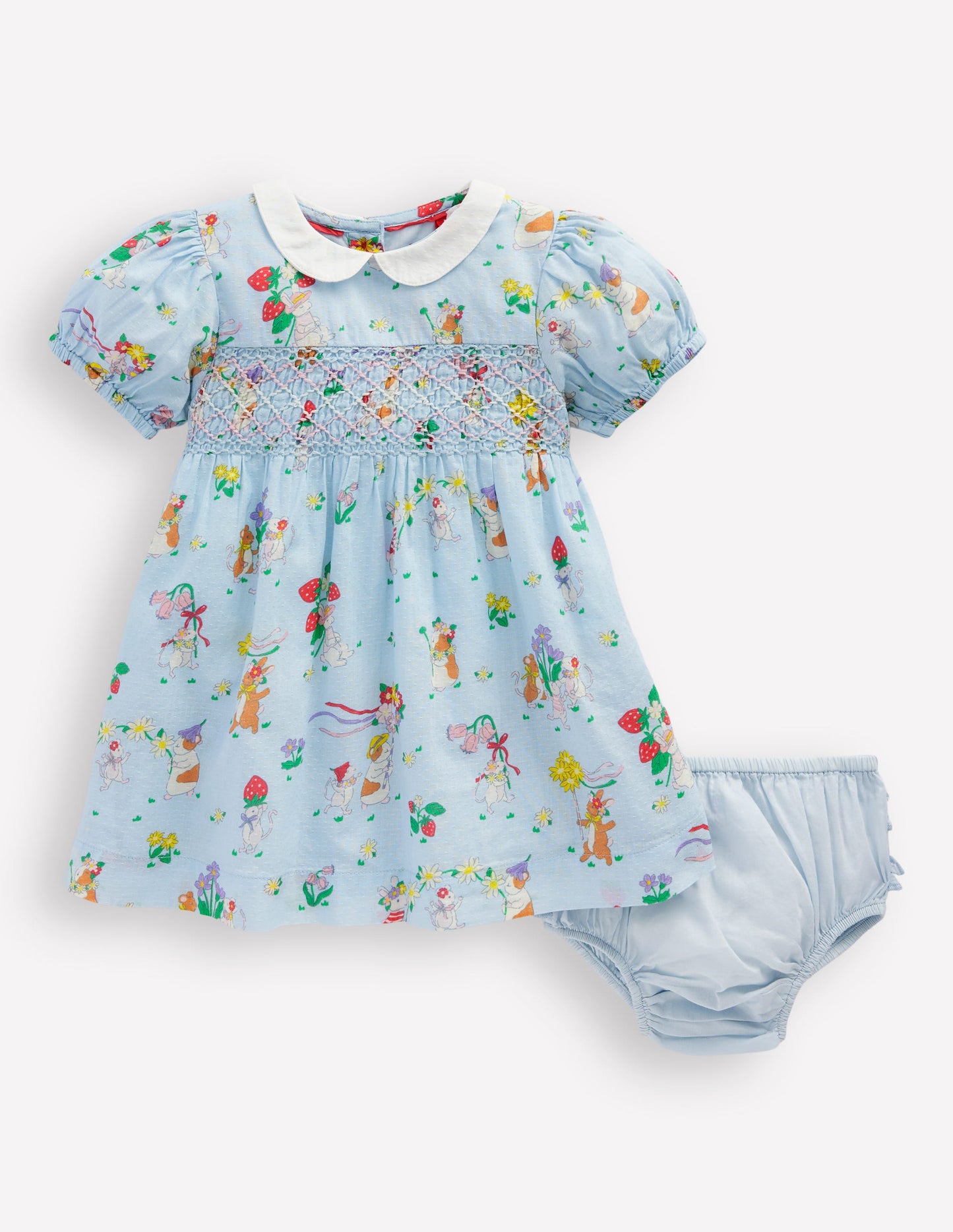 This dress has hand-stitched smocking, a Peter Pan collar and is spun from soft-on-skin cotton. As for the matching bloomers? They come in the same print as the dress lining.
