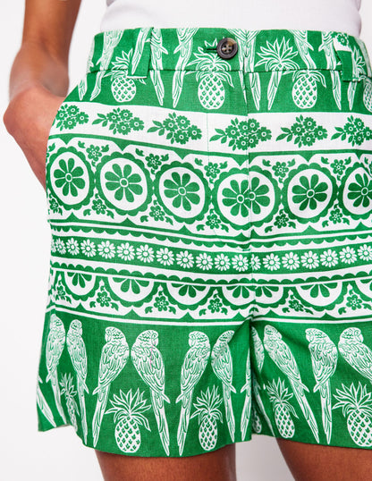 Westbourne Linen Shorts Rich Emerald, Ornate Tropics